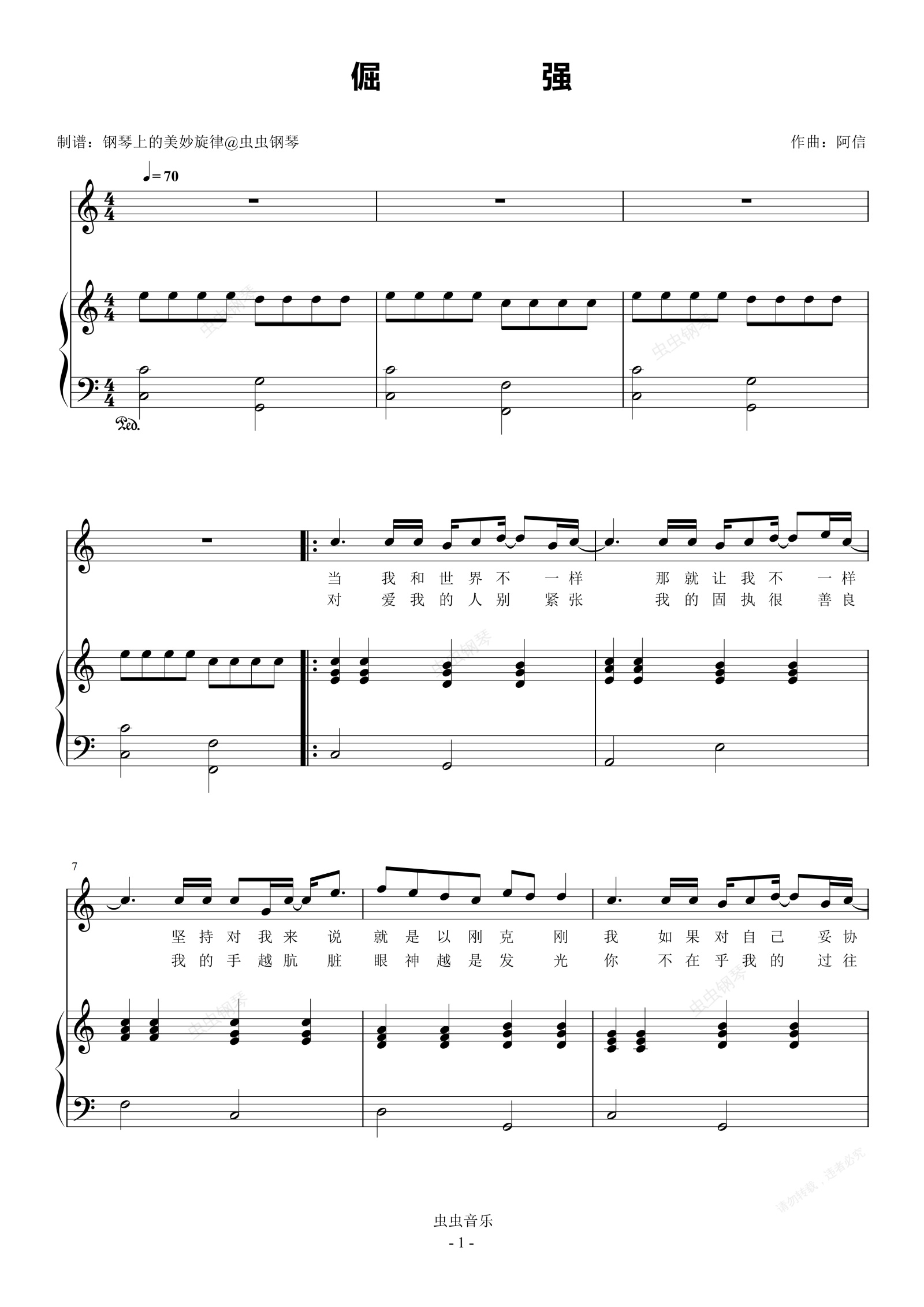 钢琴谱:倔强 简易钢琴弹唱伴奏 带歌词 五月天 流行经典
