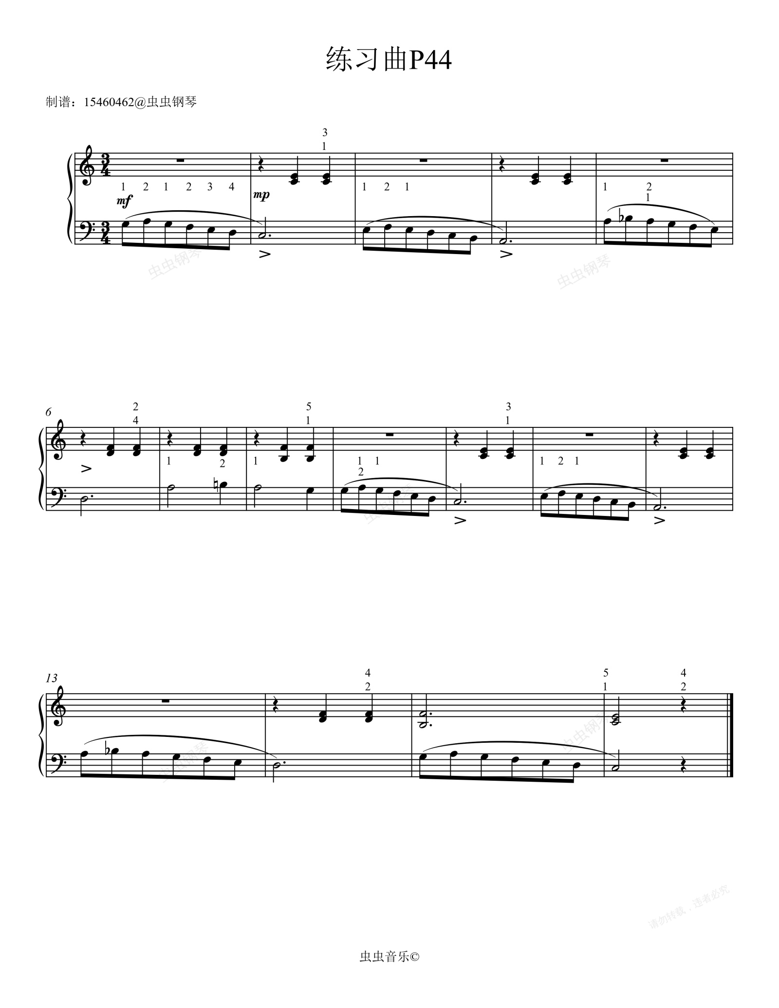 钢琴谱:儿童钢琴初步教程2 P44练习曲