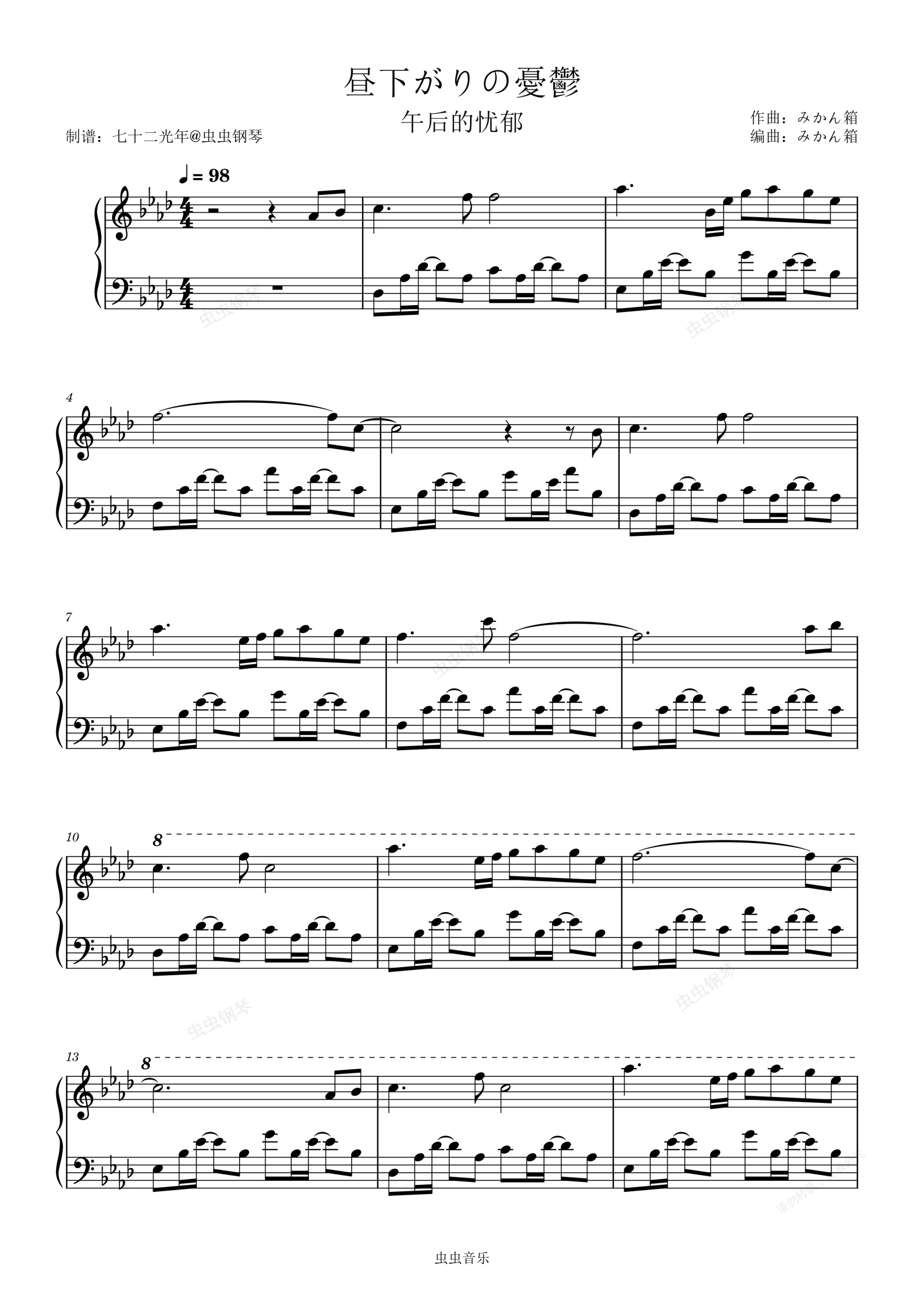 钢琴谱:昼下がりの憂鬱