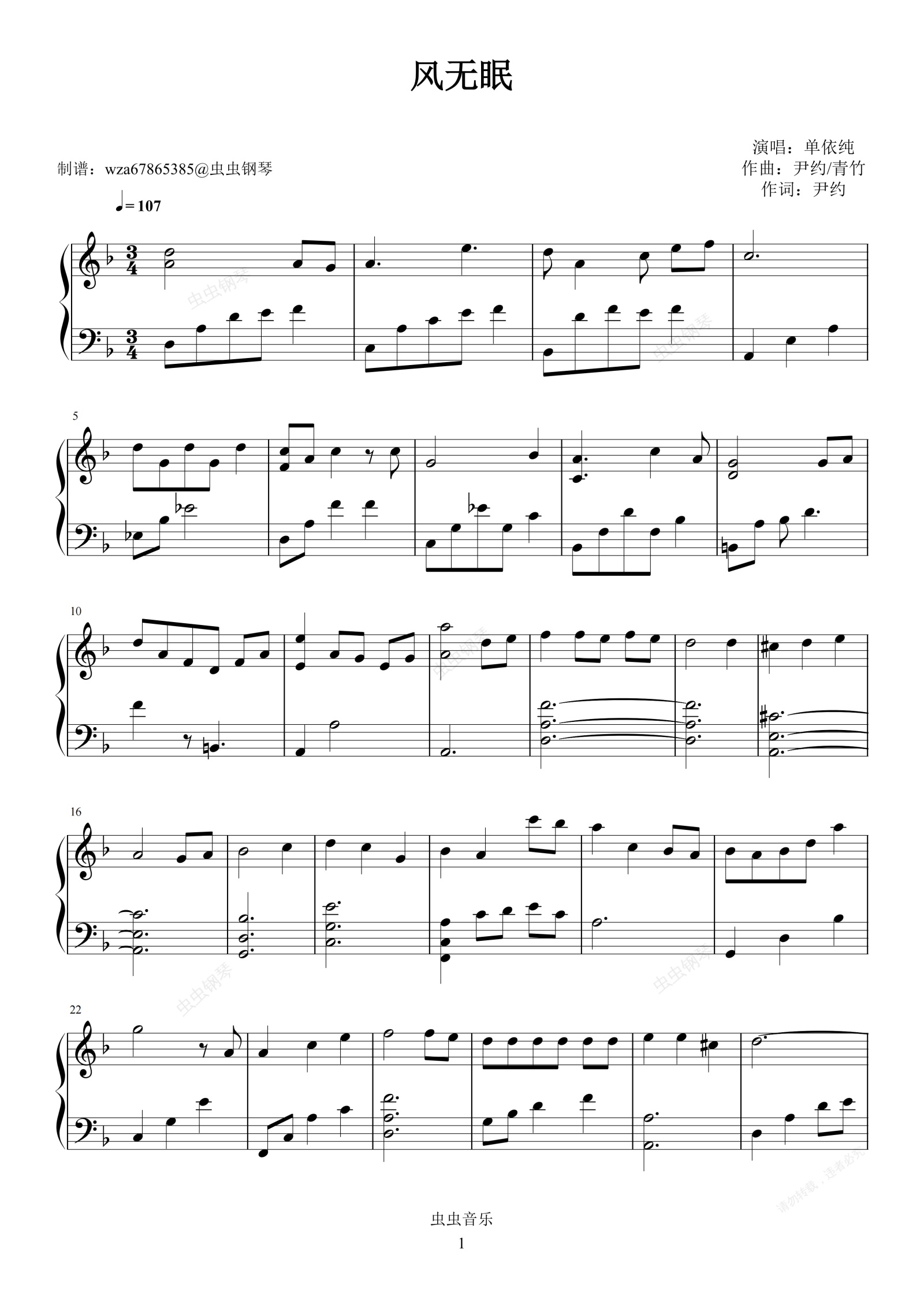 钢琴谱:风无眠