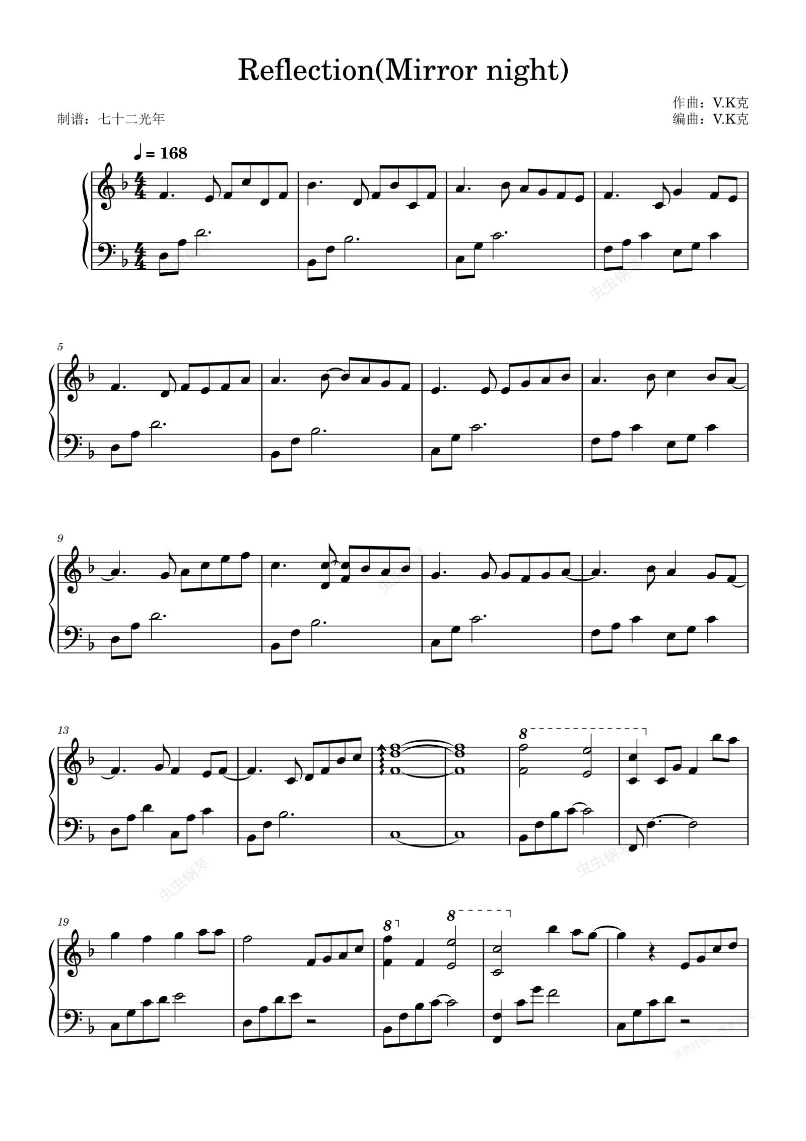 钢琴谱:Reflection(Mirror night) 镜夜