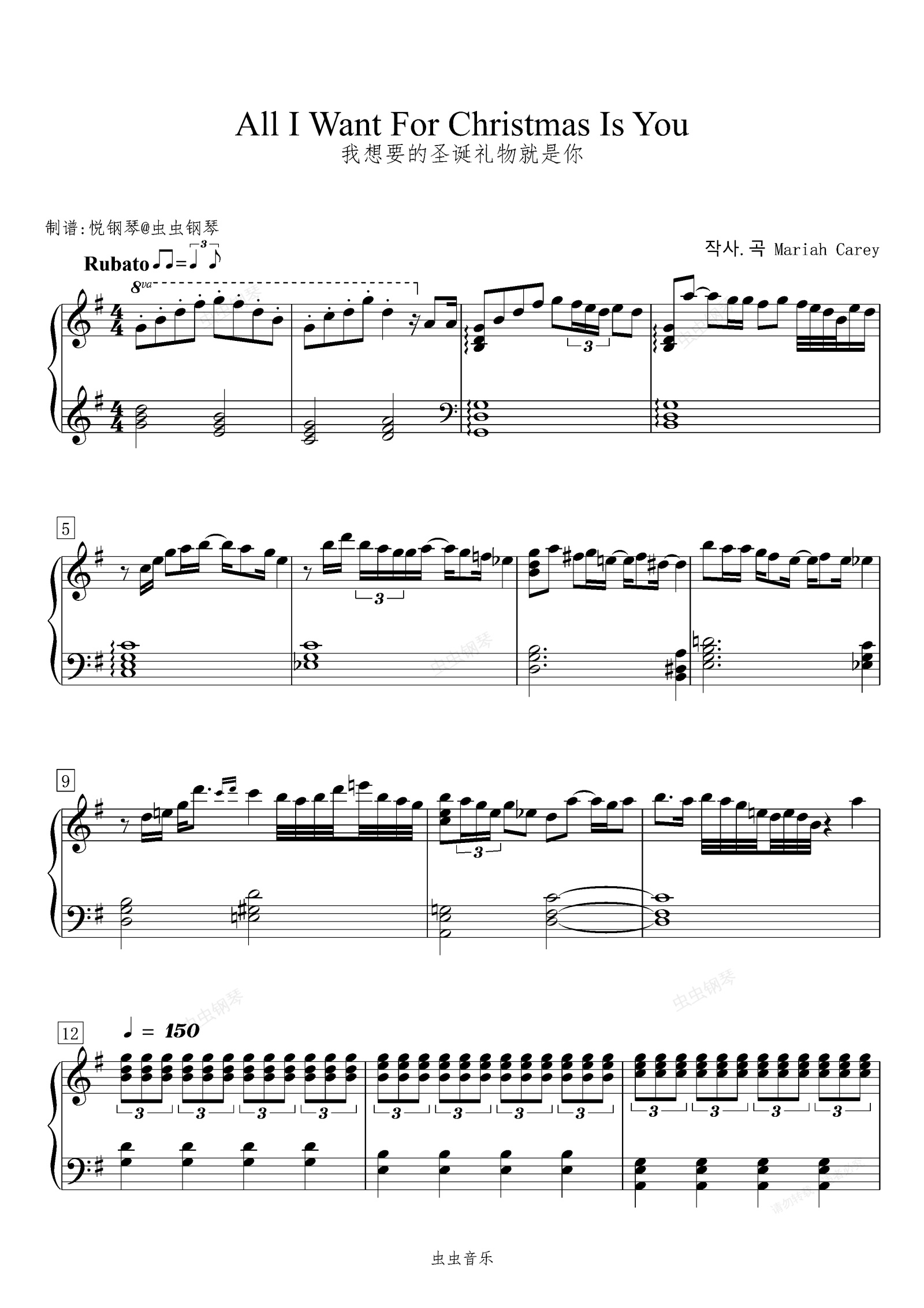 钢琴谱:我想要的圣诞礼物就是你 /All I Want For Christmas Is You【抒情】