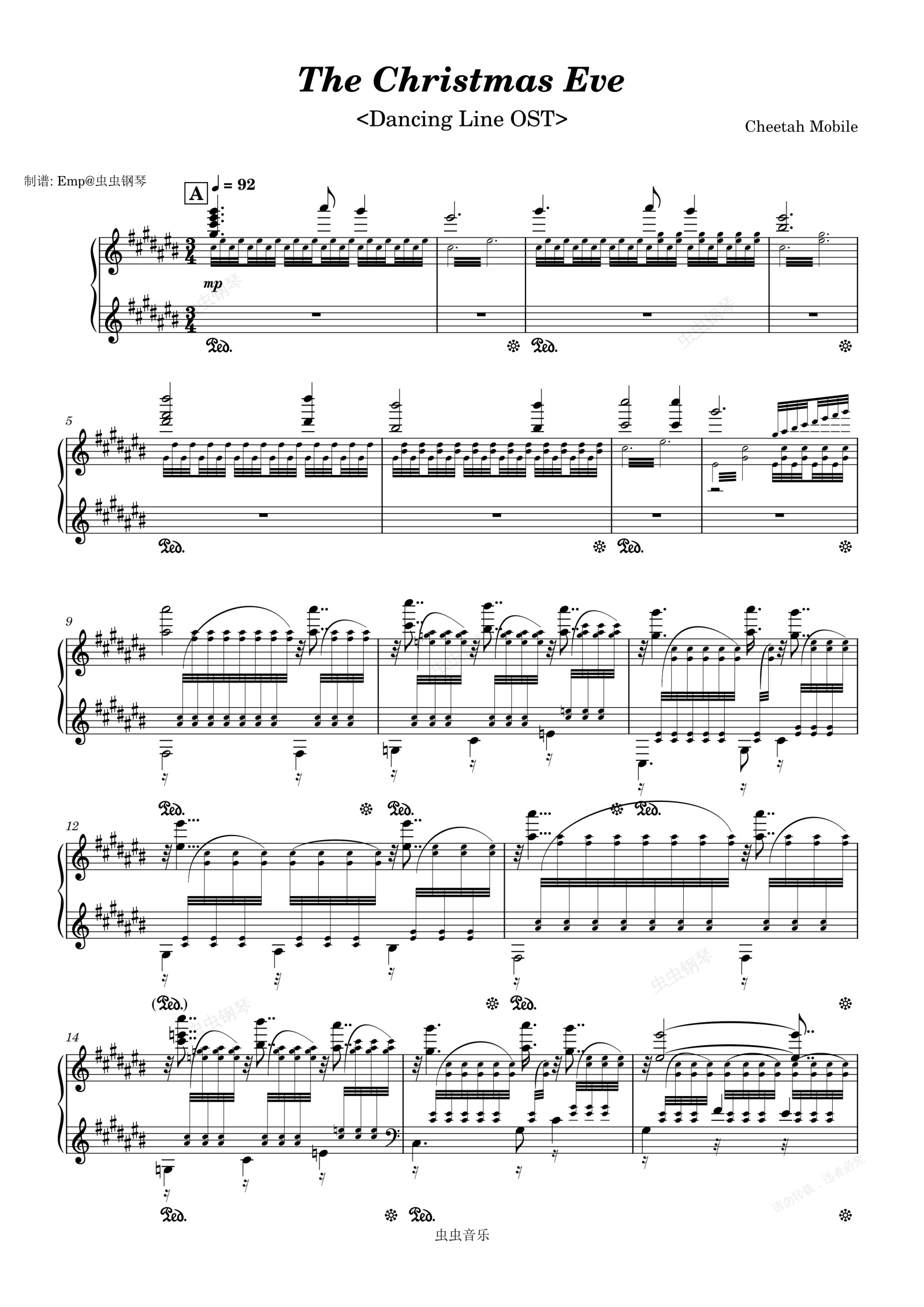 钢琴谱:The Christmas Eve(圣诞前夕) — Dancing Line OST 钢琴改编