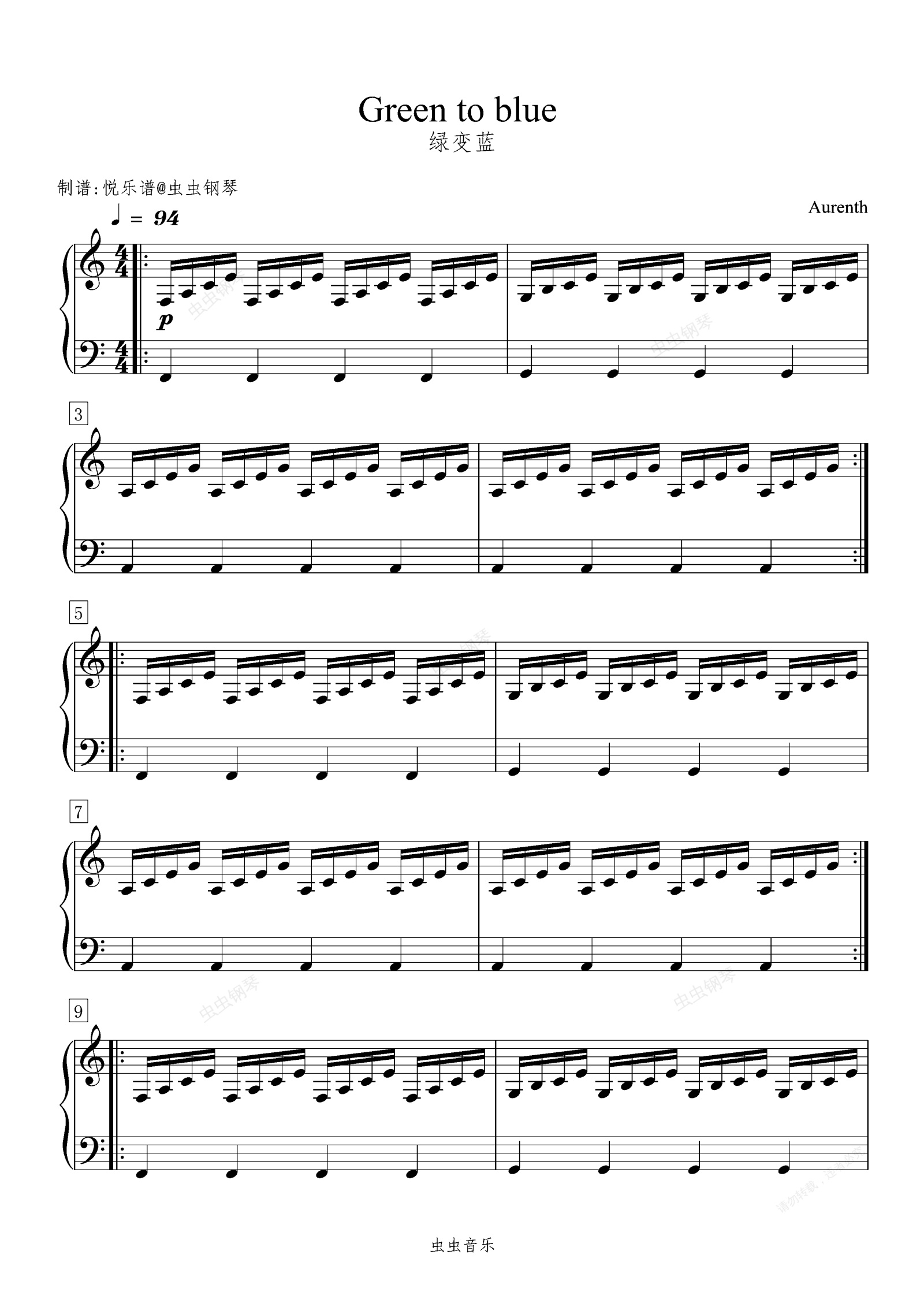 钢琴谱:绿变蓝/Green to blue-a小调【幻想】