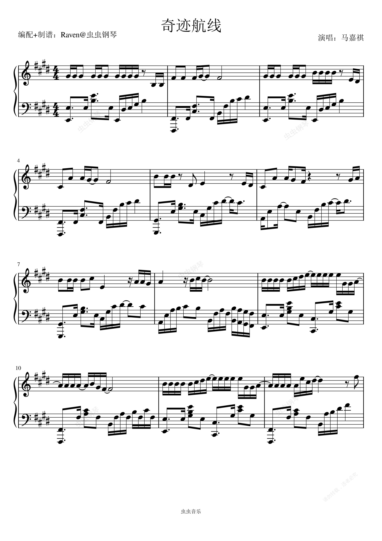 钢琴谱:奇迹航线 马嘉祺 钢琴完美独奏