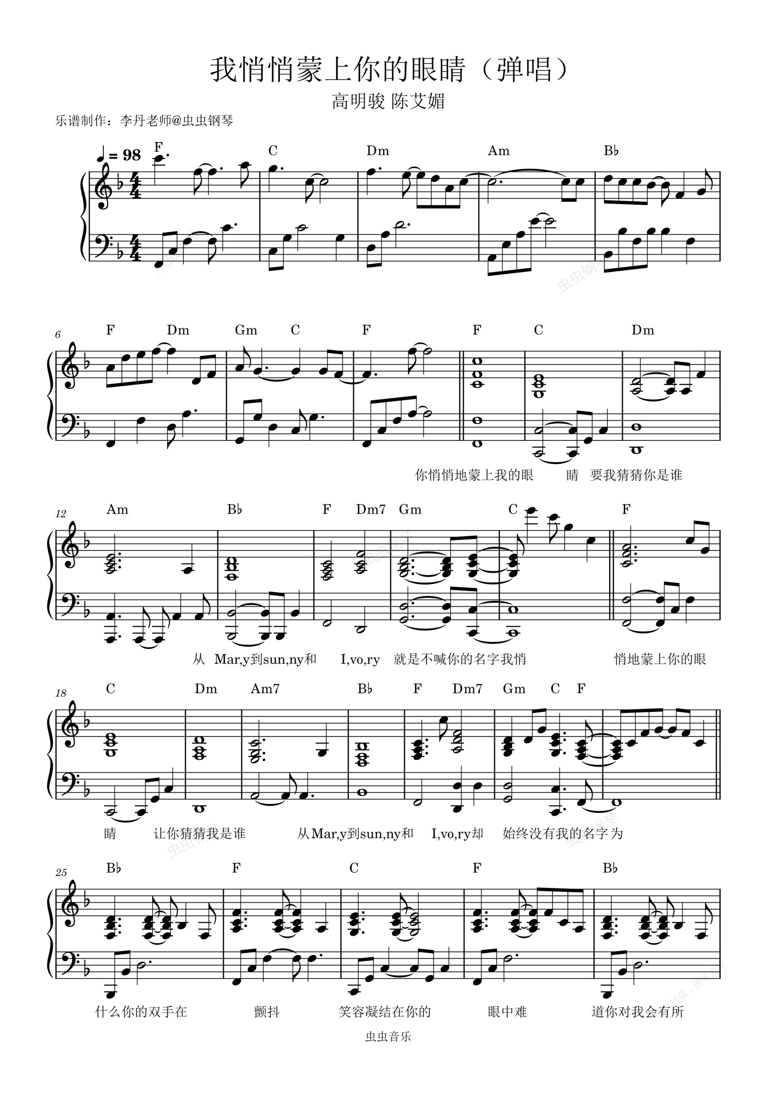 钢琴谱:我悄悄蒙上你的眼睛(弹唱)