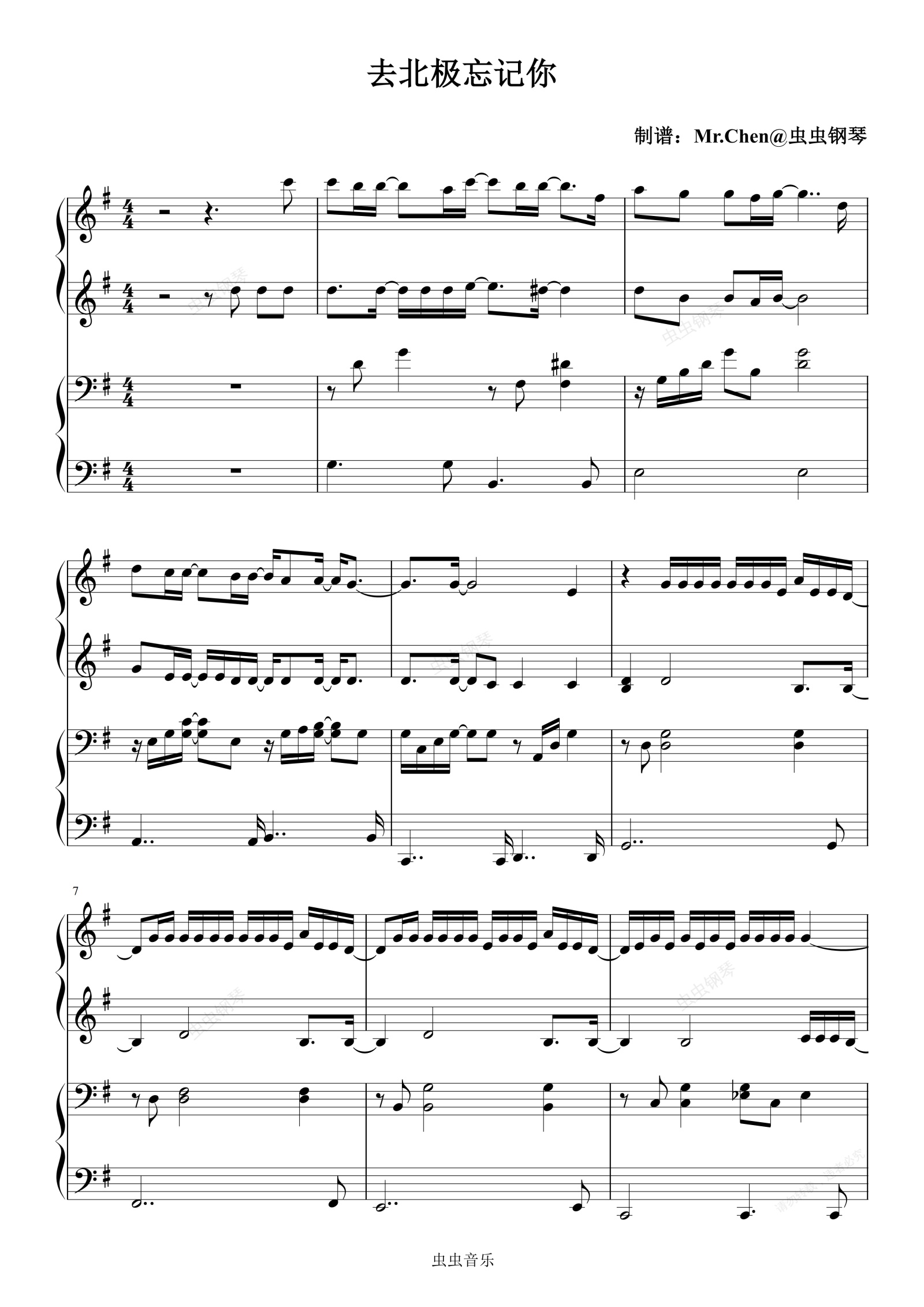 钢琴谱:去北极忘记你 (四手联弹)- 林宥嘉/汪苏泷