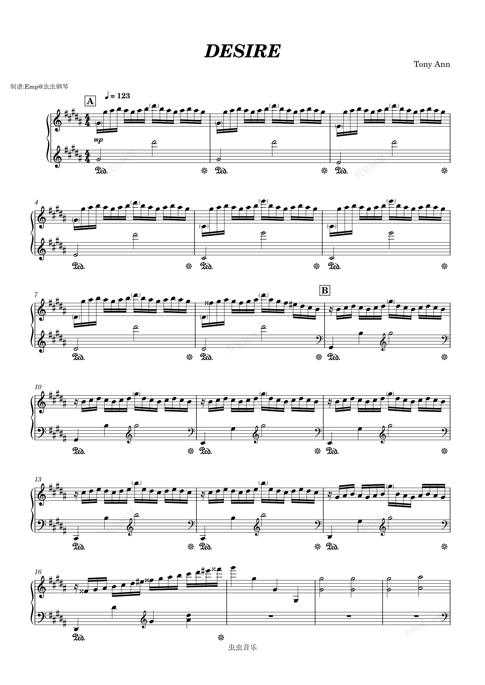 钢琴谱:【纯音乐】DESIRE - Tony Ann 钢琴扒谱分享