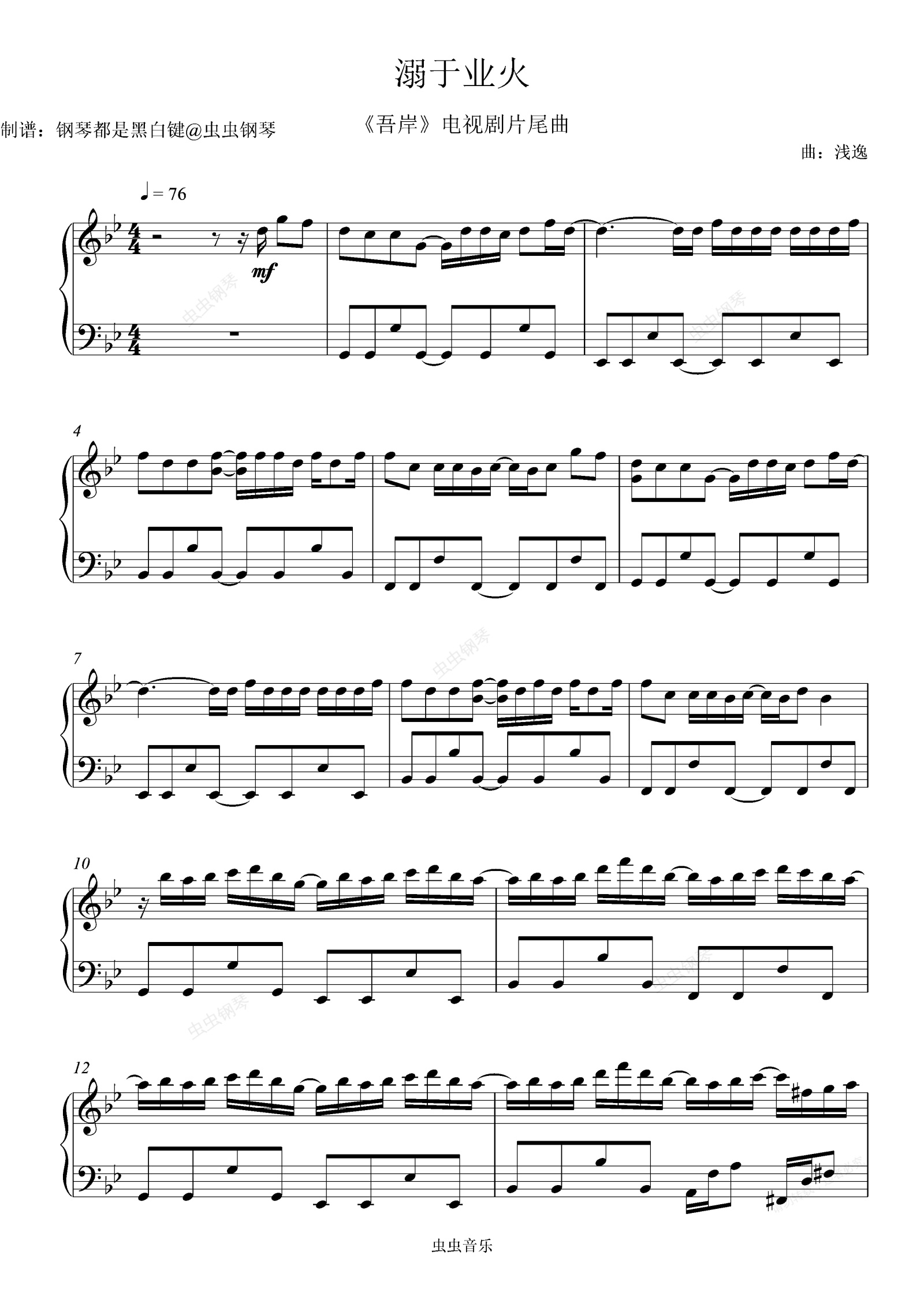 钢琴谱:《吾岸》电视剧片尾曲 - 溺于业火(钢琴演奏版)