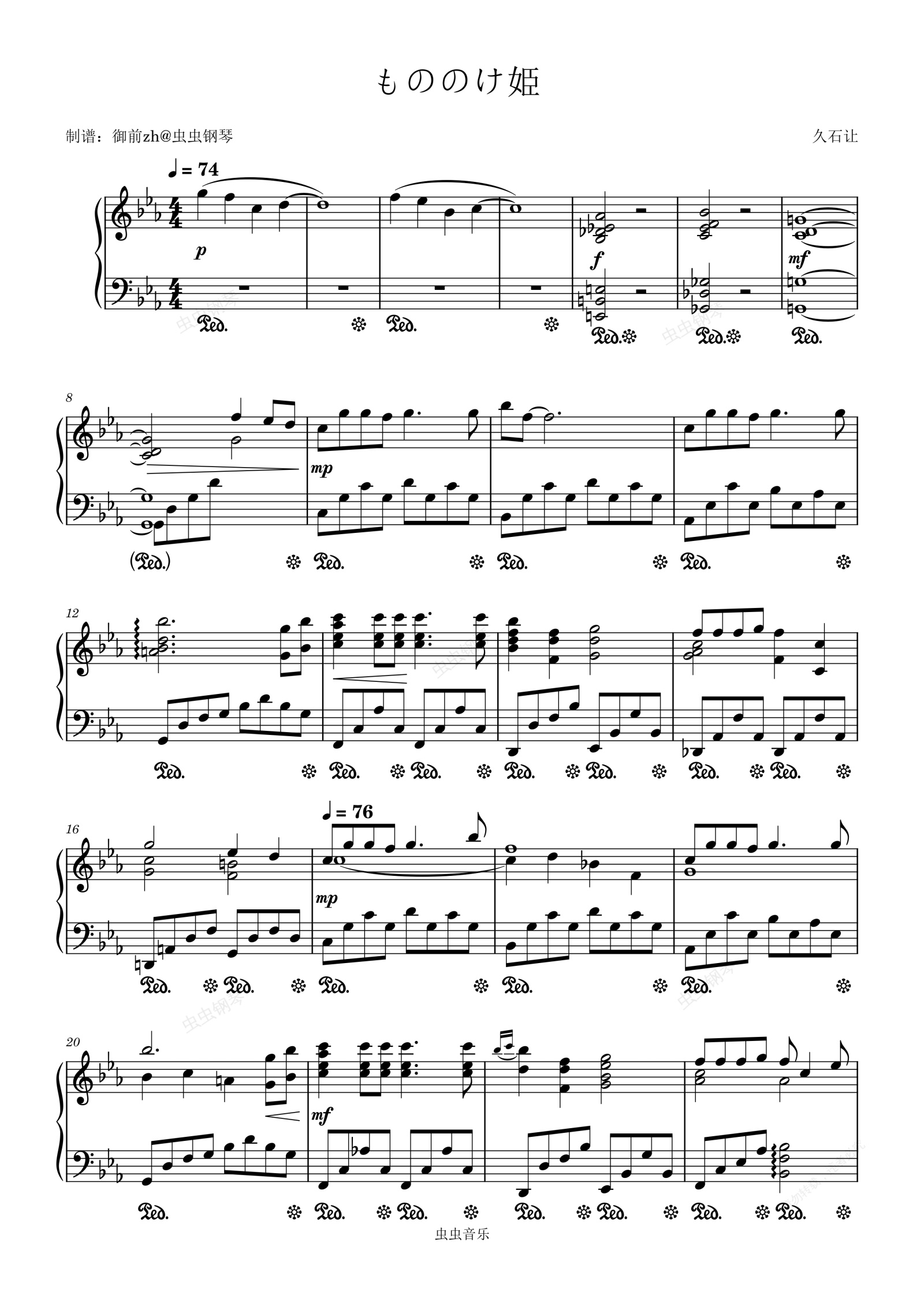钢琴谱:もののけ姫(幽灵公主)动画电影《幽灵公主》片尾曲