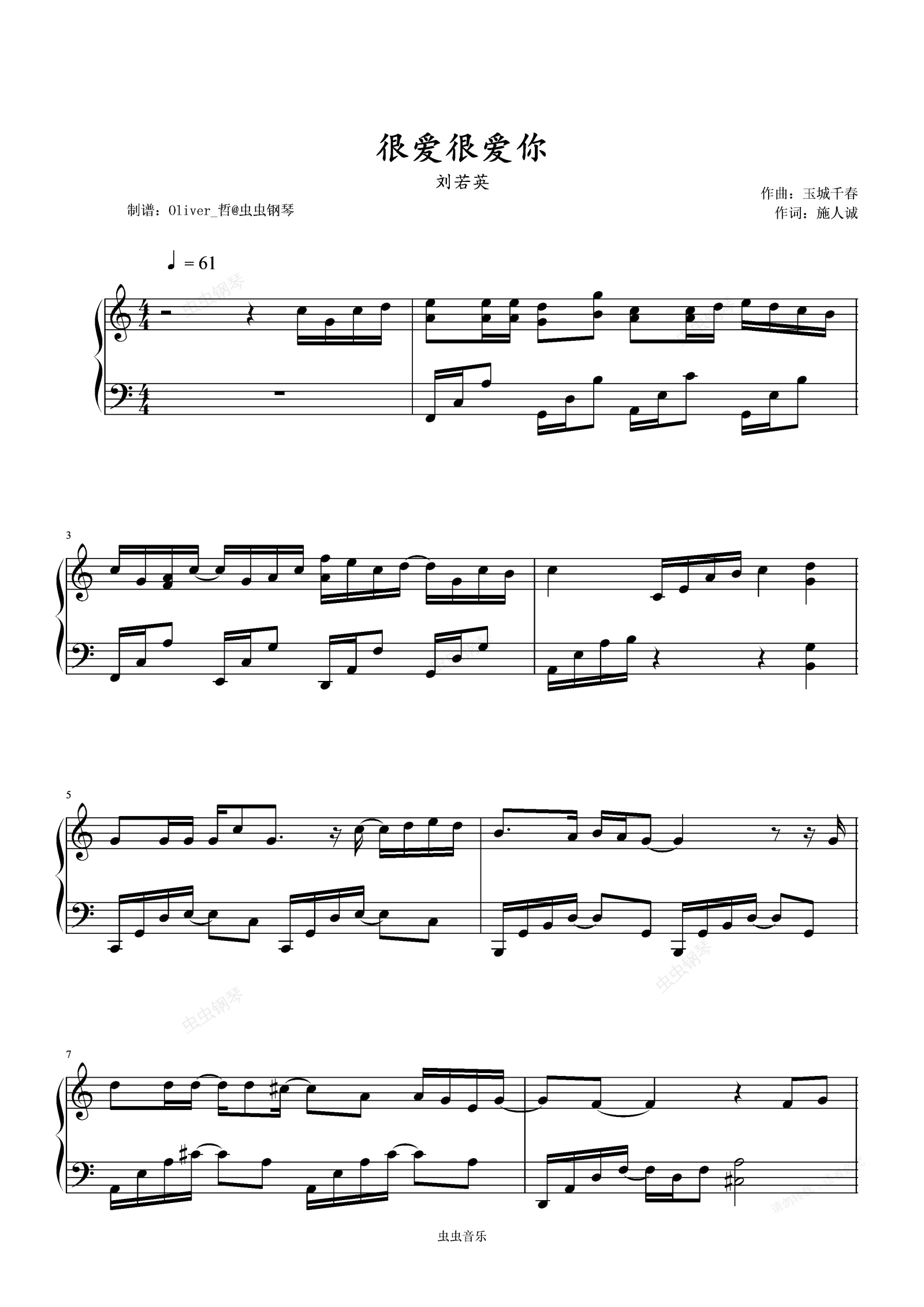 钢琴谱:很爱很爱你 刘若英 C调精编简易版 经典怀旧 好听易弹(电视剧《真情》片尾曲)