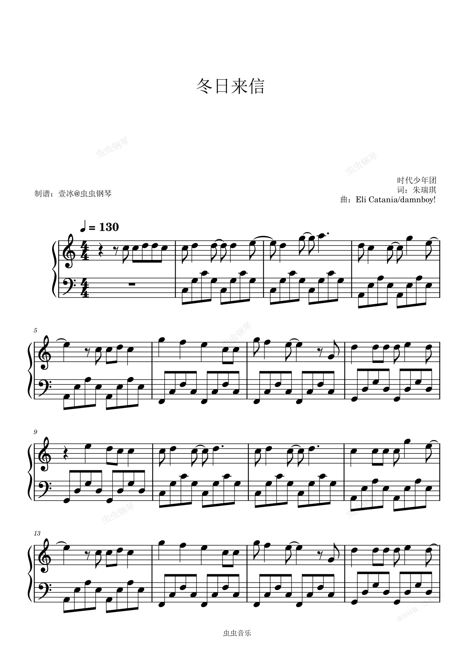 钢琴谱:冬日来信 (Winter Love Letter) - 时代少年团 C调