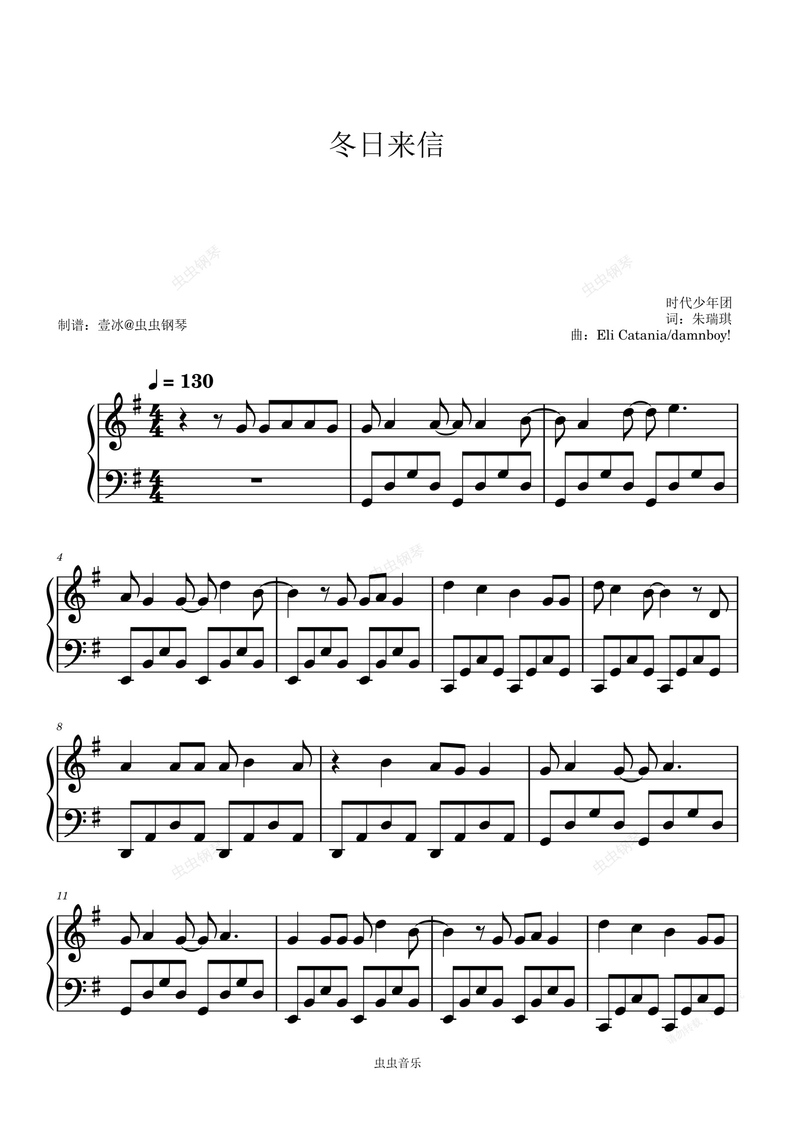 钢琴谱:冬日来信 (Winter Love Letter) - 时代少年团 原调