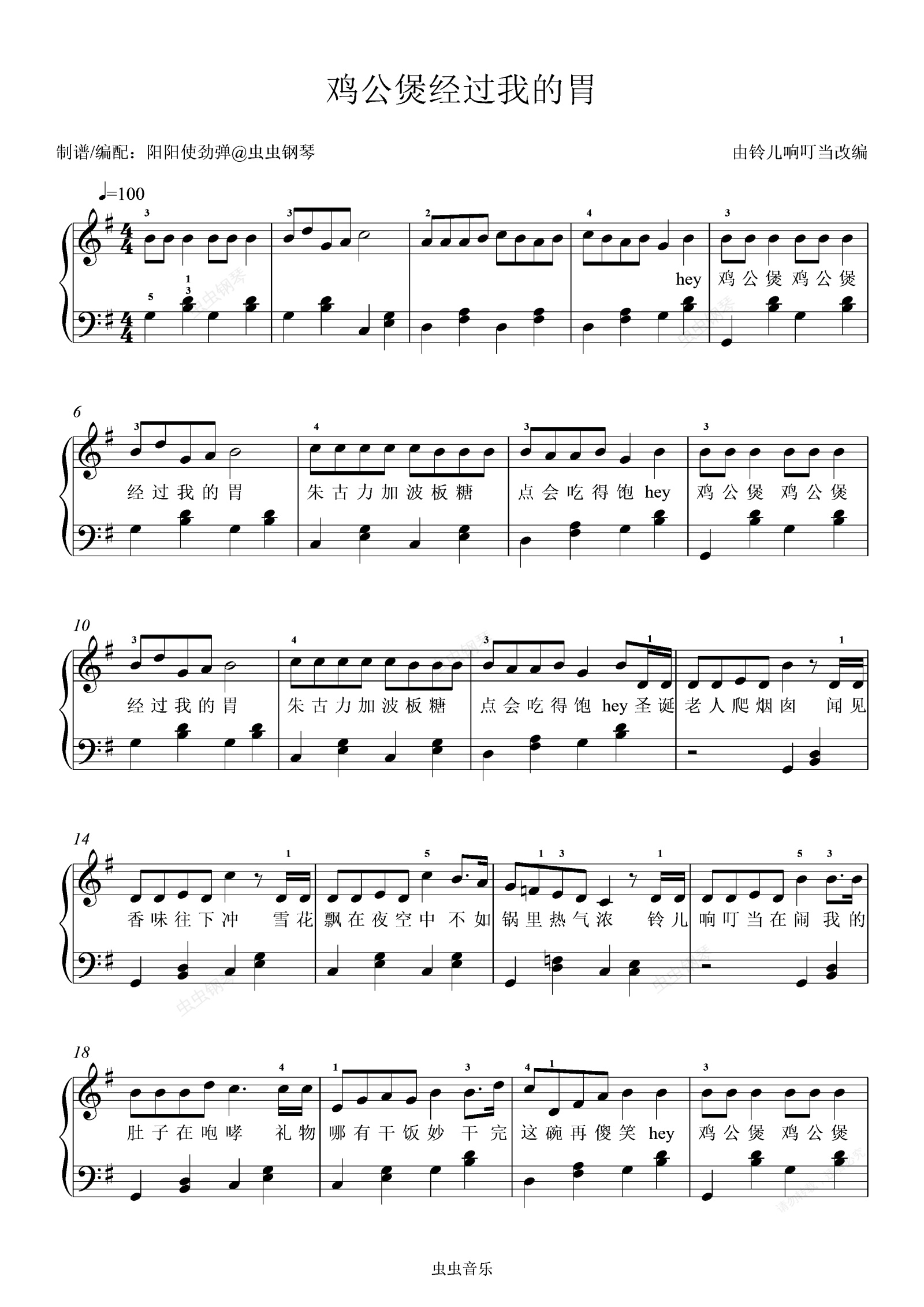 钢琴谱:鸡公煲经过我的胃(圣诞改编)
