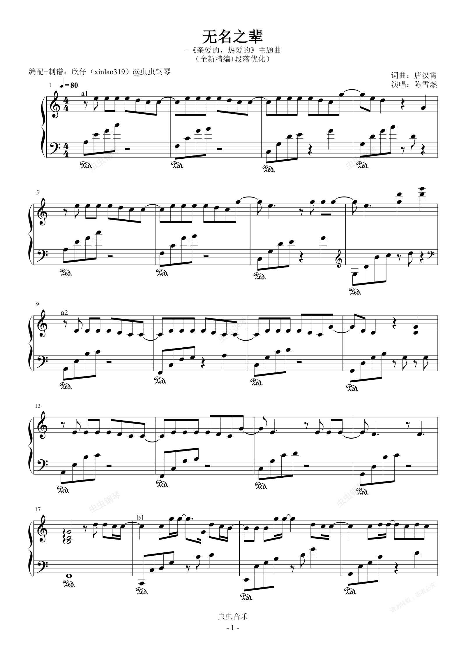 钢琴谱:无名之辈(C、陈雪燃《亲爱的,热爱的》主题曲、段落优化)