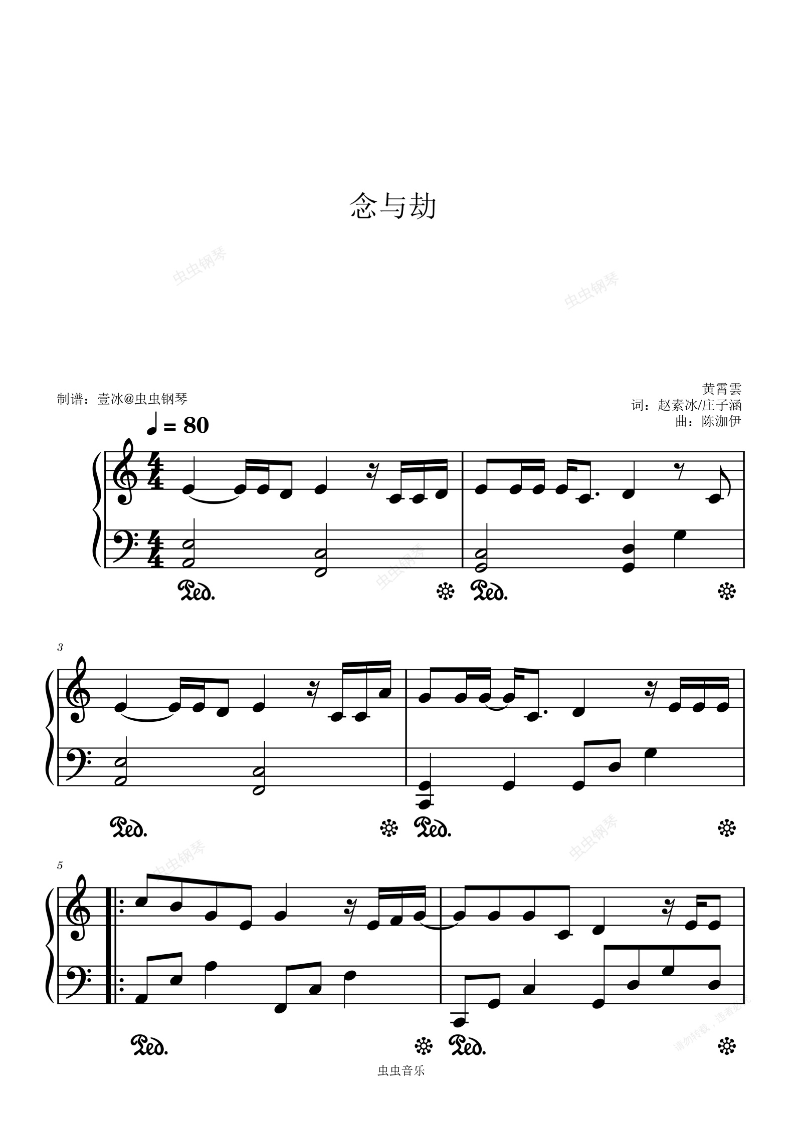 钢琴谱:念与劫 (《逍遥》电视剧心念成劫曲) - 黄霄雲 C调