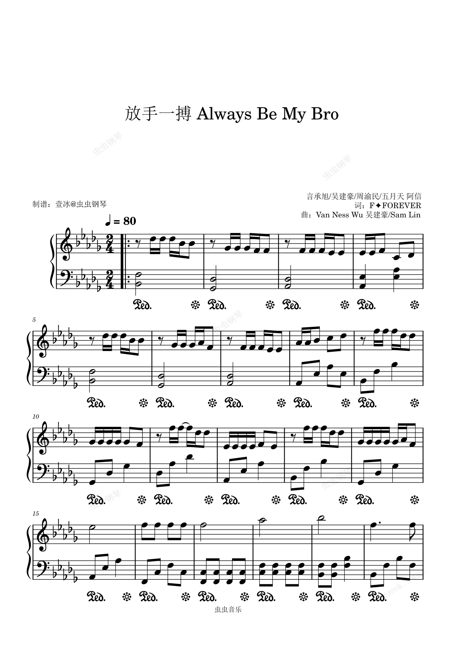 钢琴谱:放手一搏 Always Be My Bro - 原调