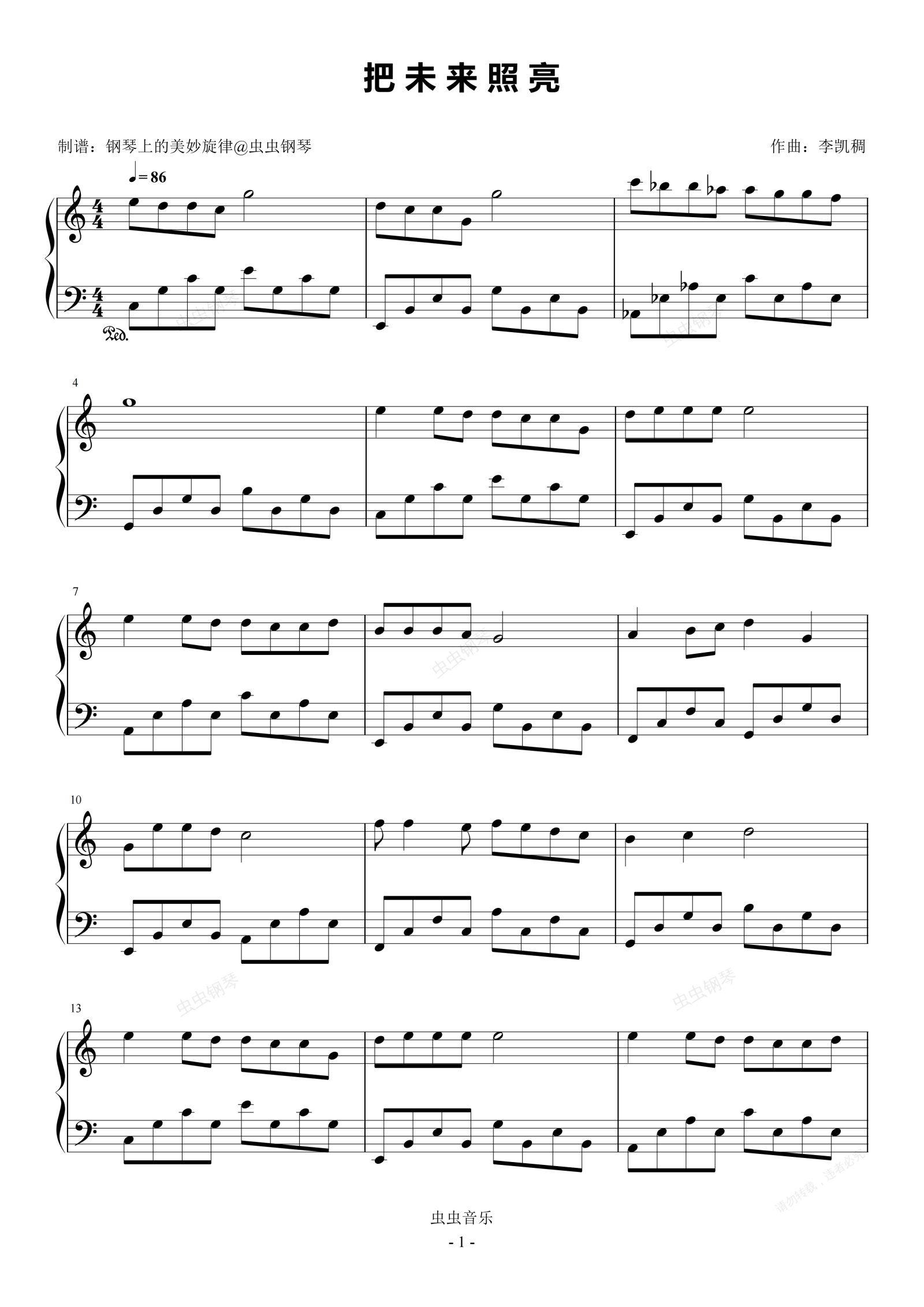 钢琴谱:把未来点亮 C调简易版 李昕融