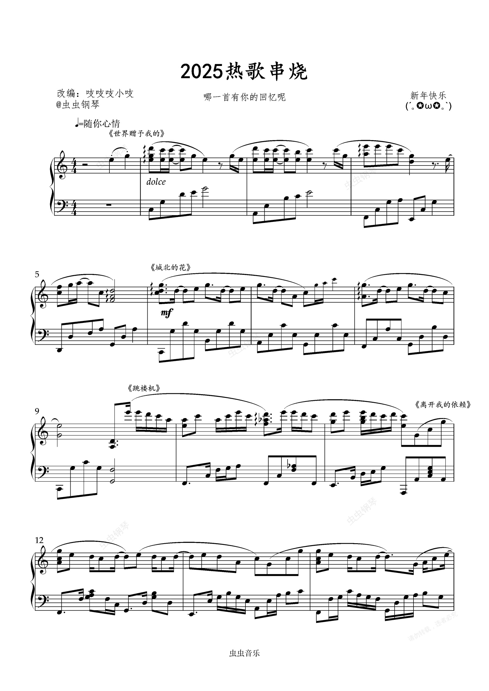 钢琴谱:2025热歌串烧 「全C调」 来领取2025年的音乐报告喔! 吱吱改编