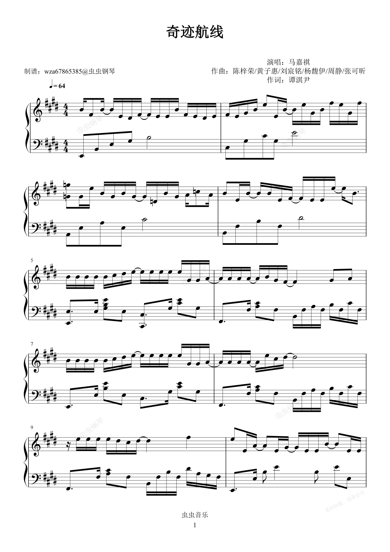 钢琴谱:奇迹航线