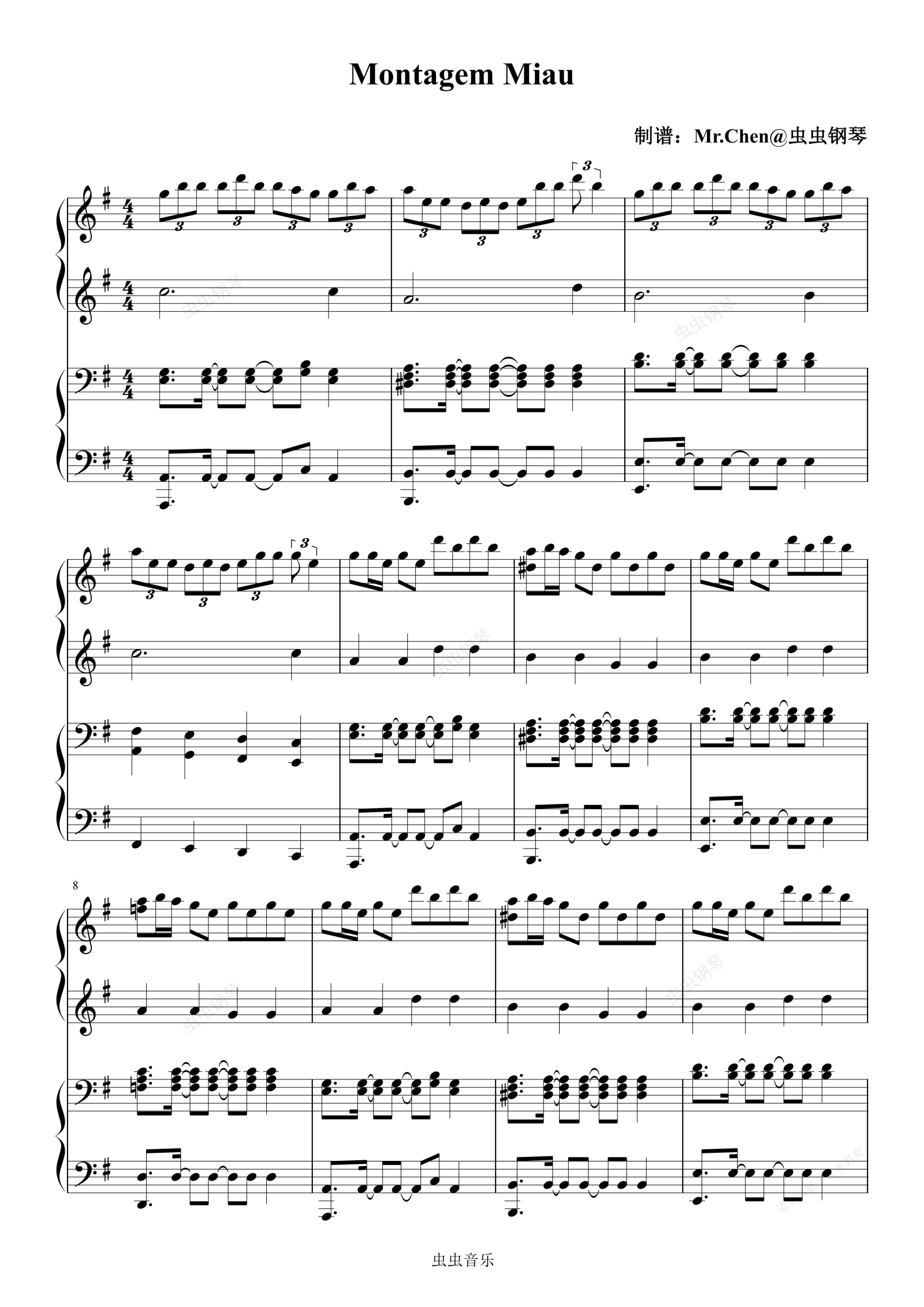 钢琴谱:Montagem Miau (四手联弹)G调 - 阿米嘎蒂朵喵喵