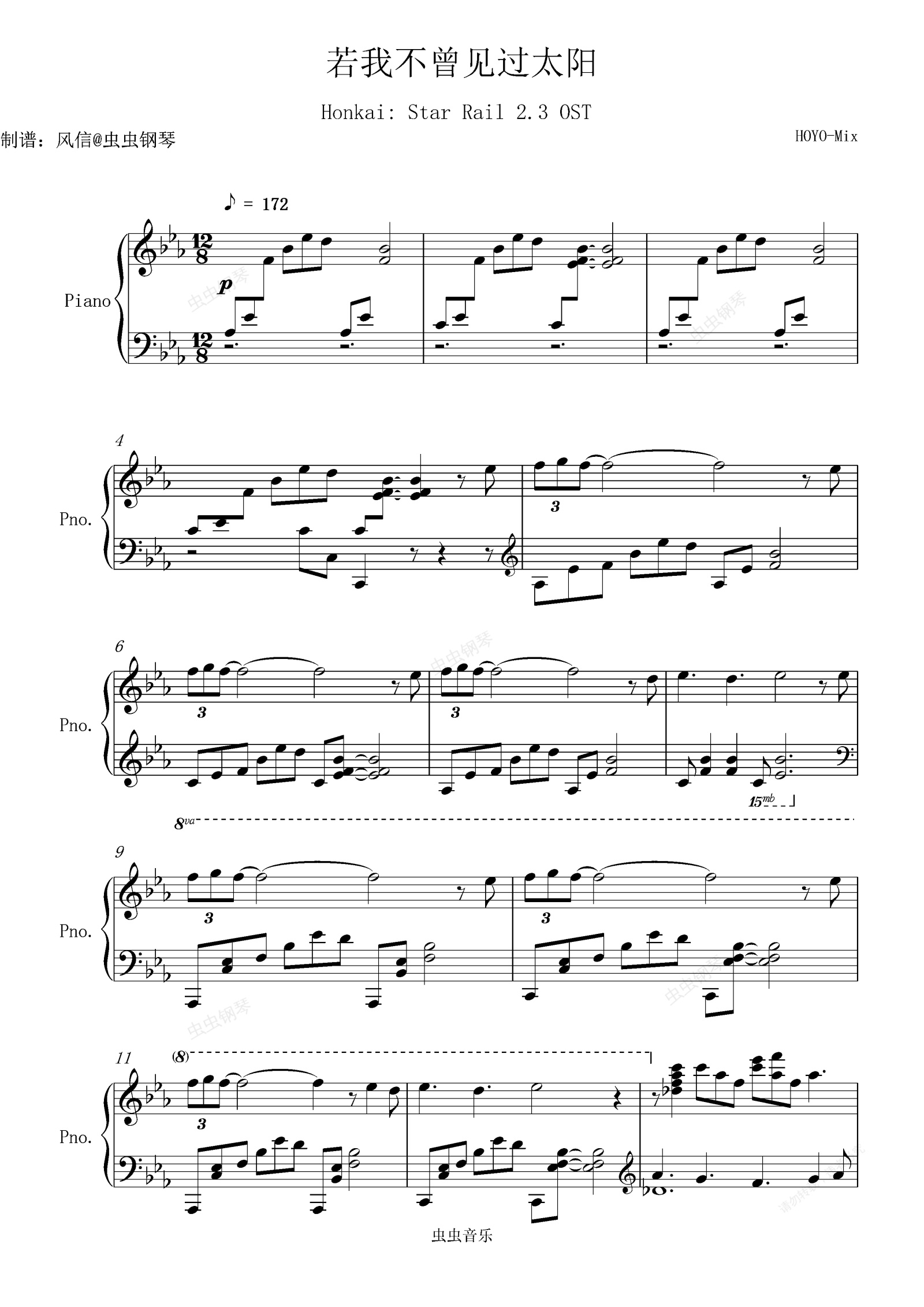 钢琴谱:【星穹铁道/钢琴】“若我不曾见过太阳”再见,匹诺康尼(2.3主线结局BGM)