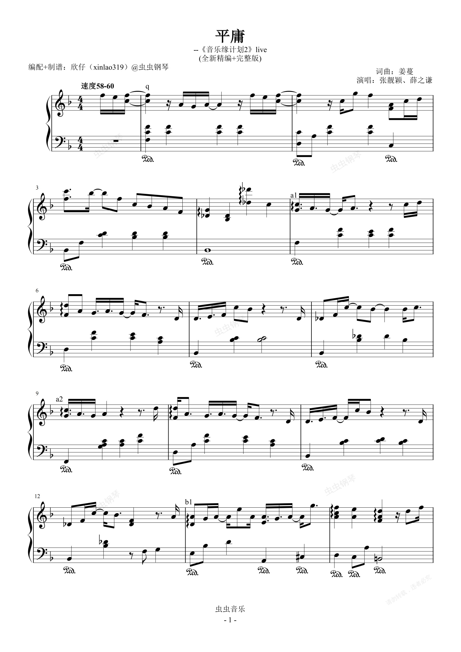 钢琴谱:平庸(F、张靓颖、薛之谦《音乐缘计划2》live、完整版)