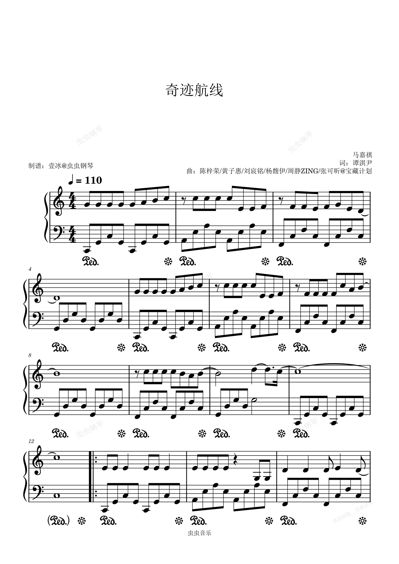 钢琴谱:奇迹航线 (总台精品短剧集《奇迹》插曲 and 片尾曲) - C调