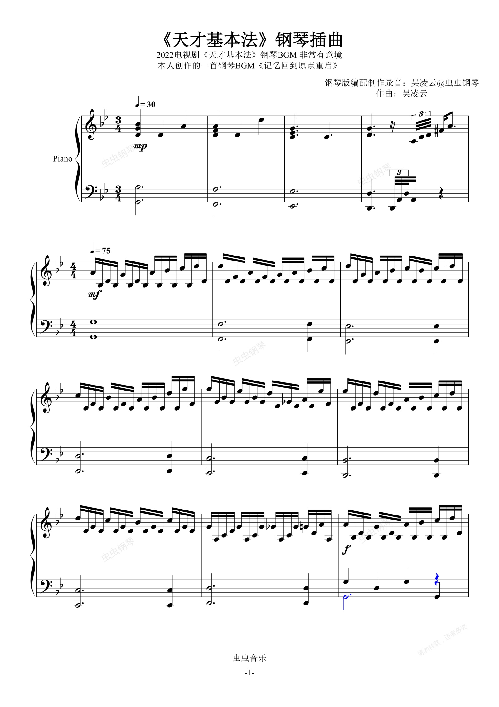 钢琴谱:《天才基本法》钢琴插曲 《记忆回到原点重启》吴凌云