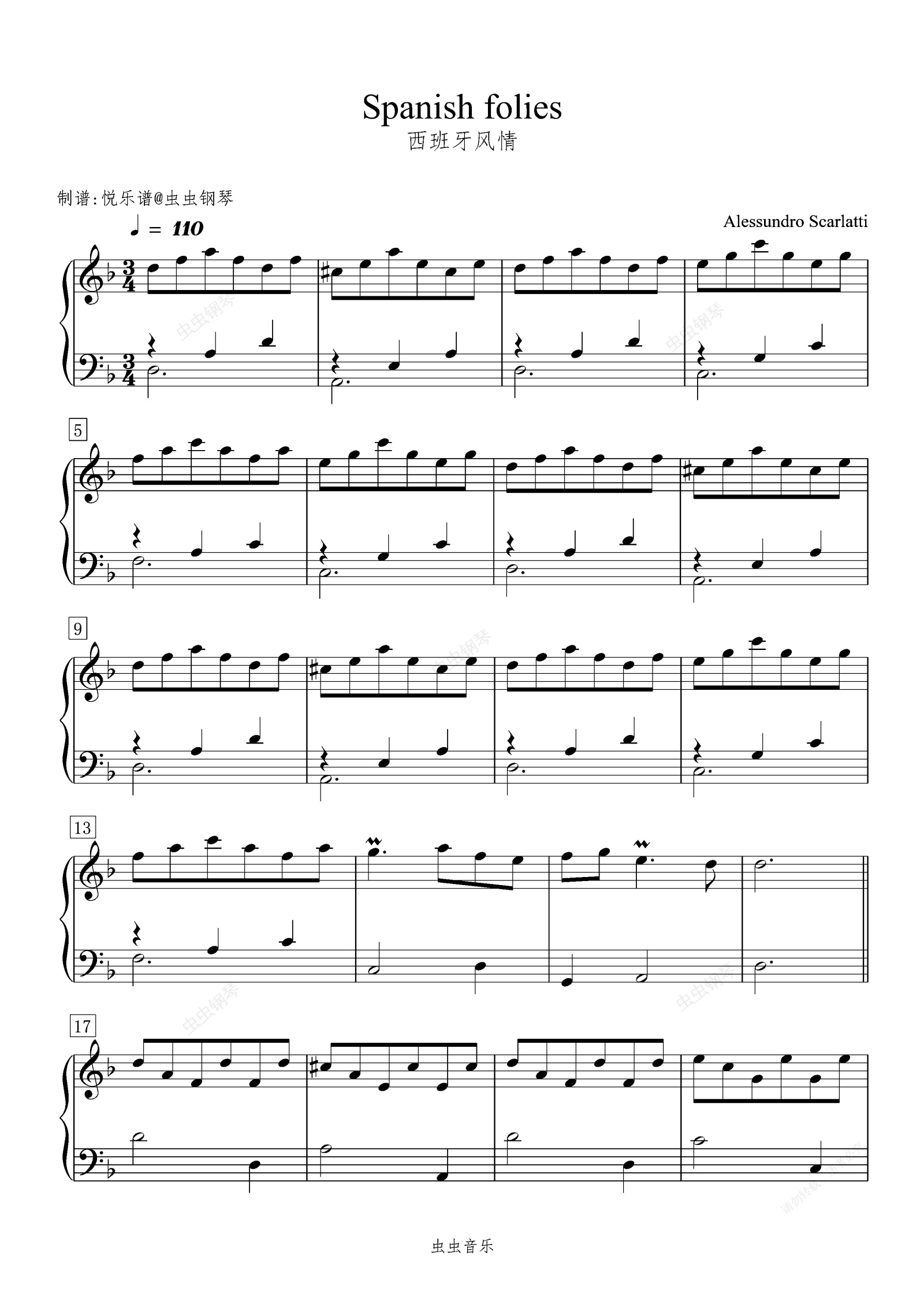 钢琴谱:西班牙风情/Spanish folies【清新】