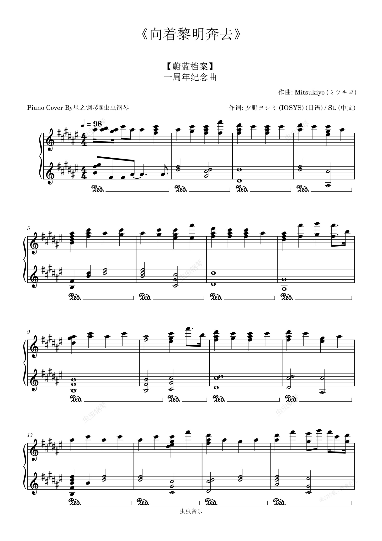 钢琴谱:【蔚蓝档案】《向着黎明奔去》钢琴独奏版~星之钢琴~