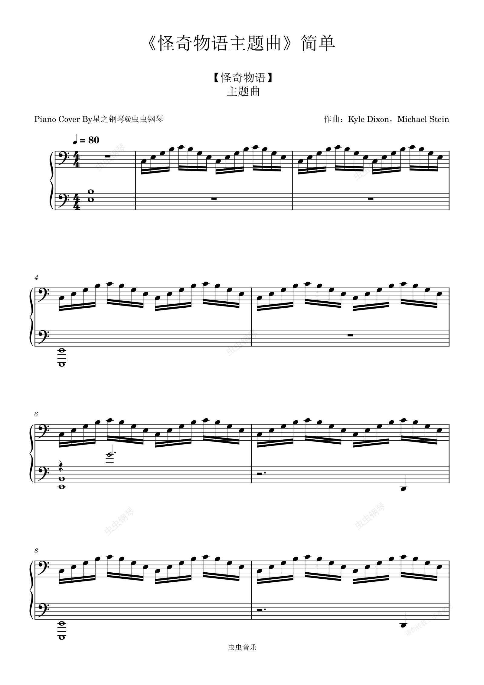 钢琴谱:【怪奇物语】《怪奇物语主题曲》钢琴简单版~星之钢琴~