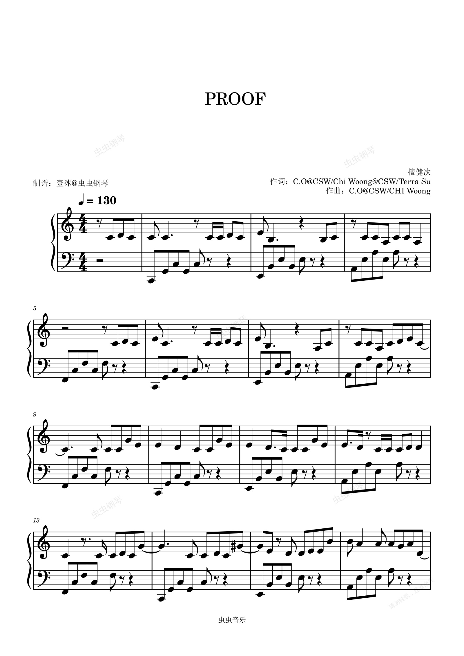 钢琴谱:PROOF - 檀健次 C调