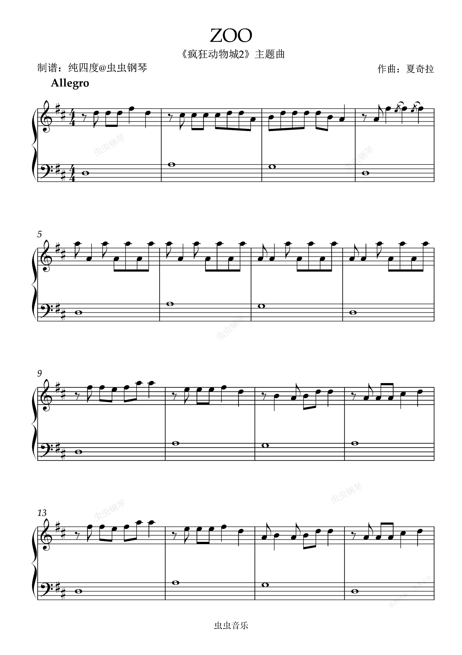 钢琴谱:Zoo《疯狂动物城2》儿童简易版(原调)