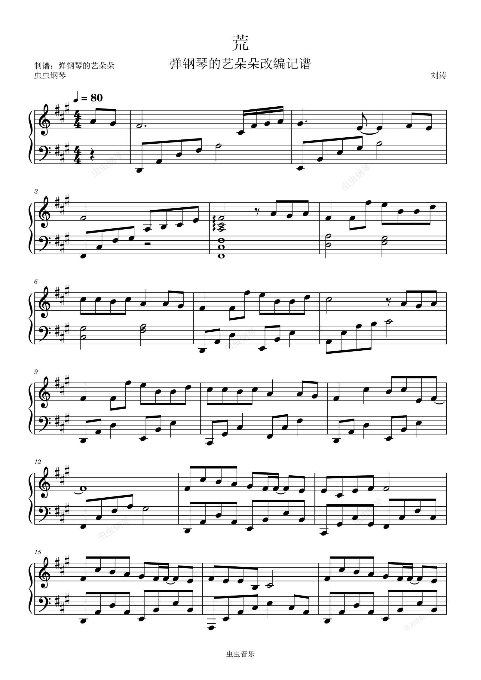 钢琴谱:荒(原调谱)