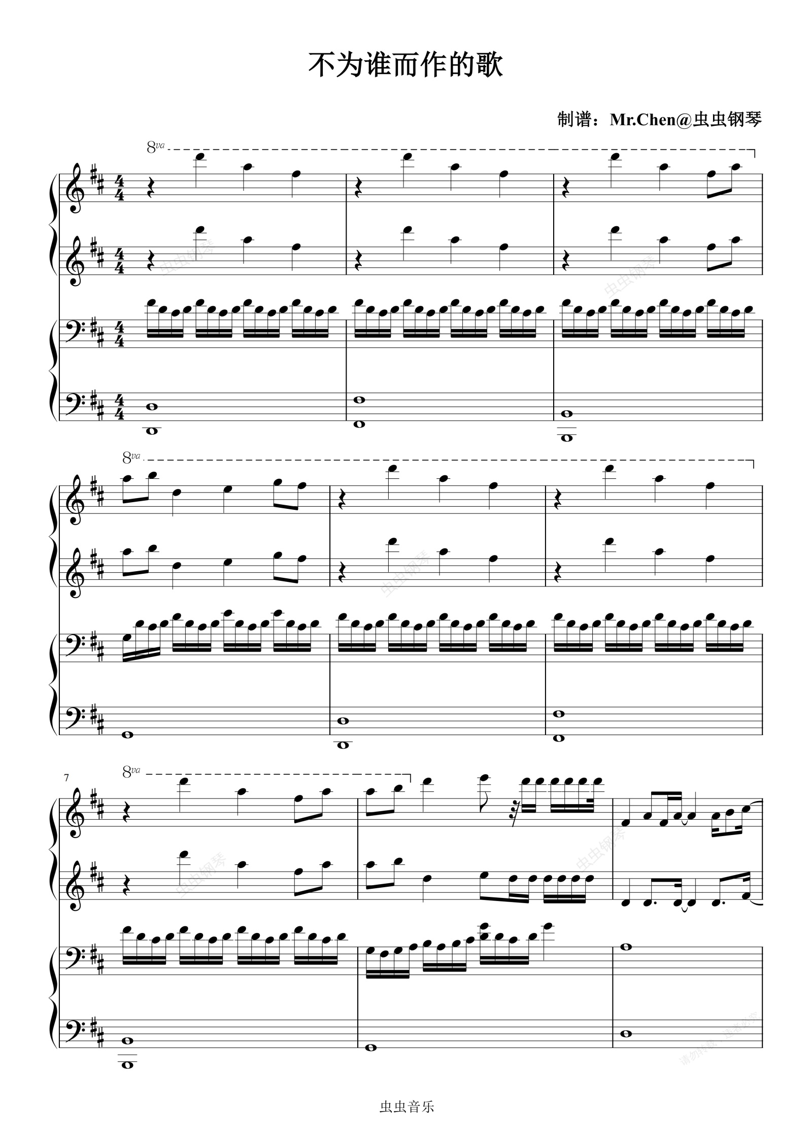 钢琴谱:不为谁而作的歌 (四手联弹)- 林俊杰