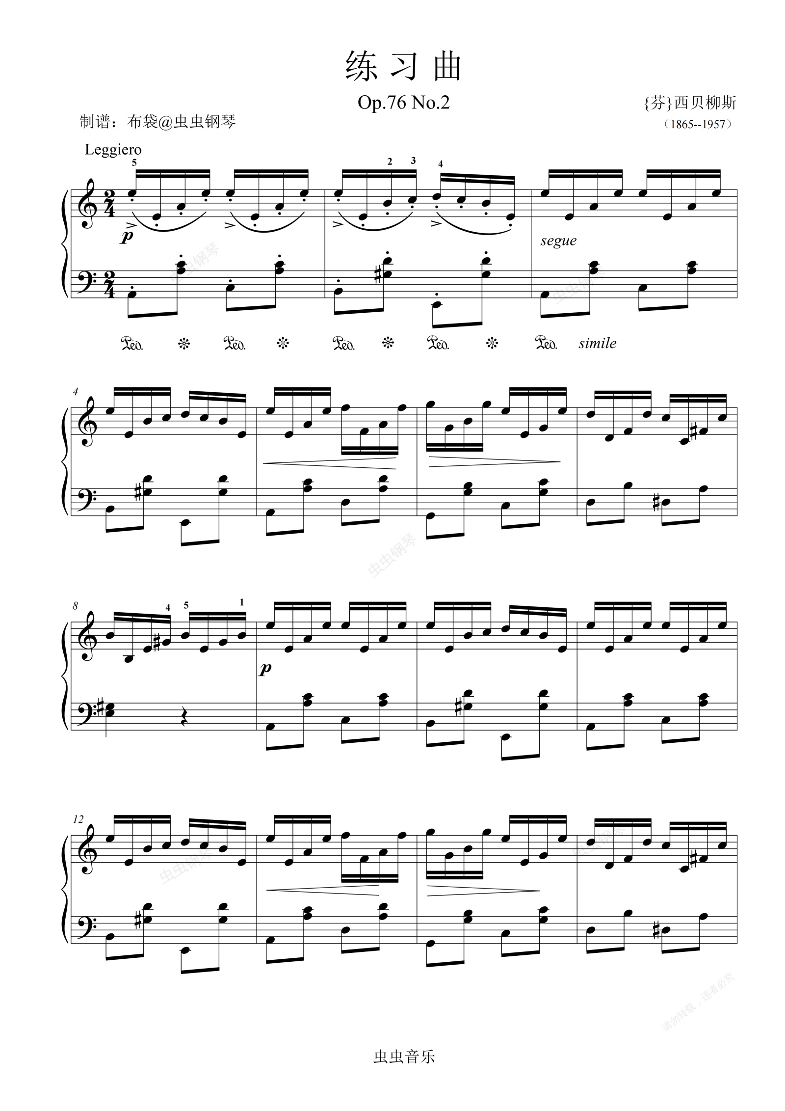 钢琴谱:练习曲op76 no2 西贝柳斯 C调原版