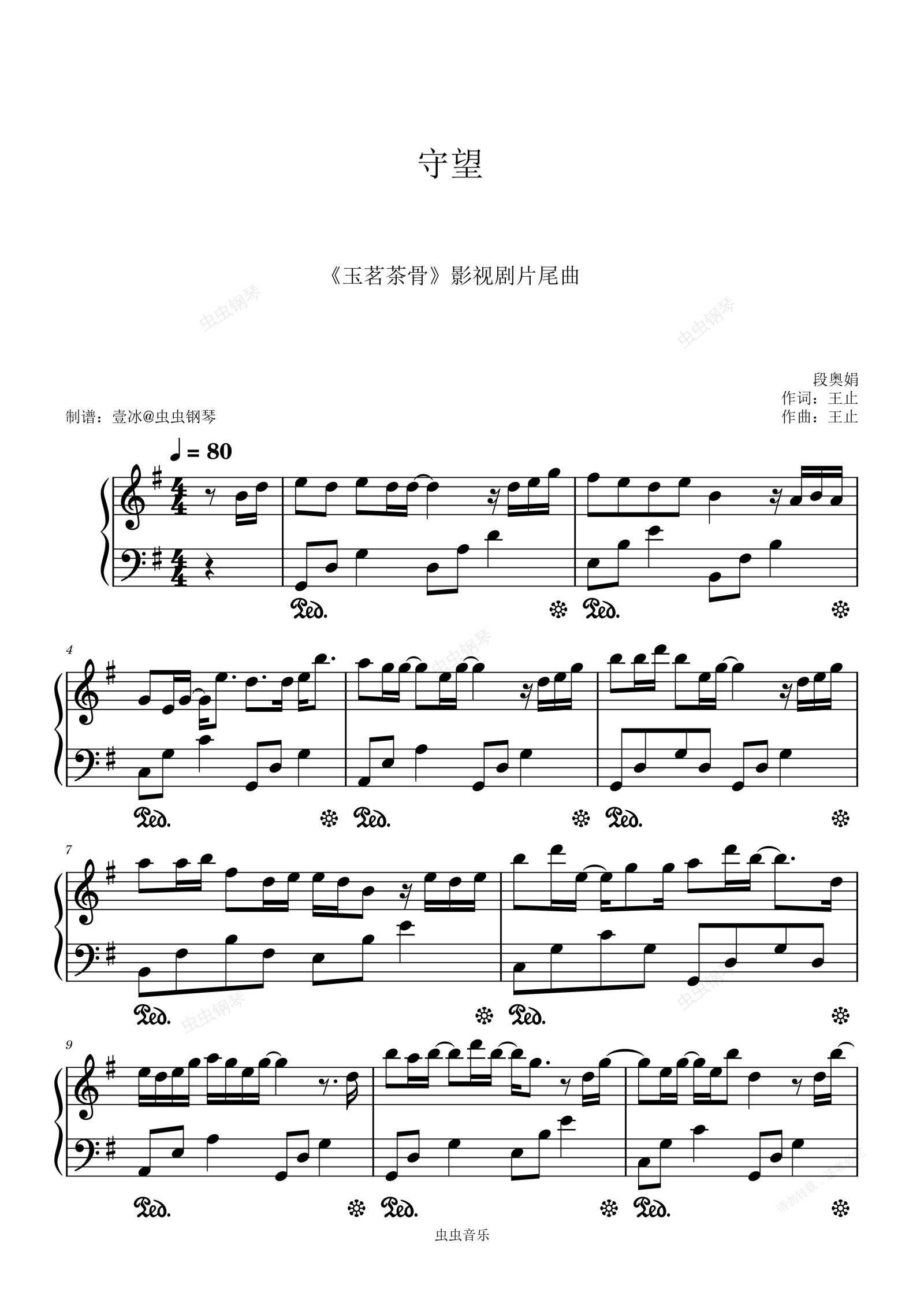 钢琴谱:守望 (《玉茗茶骨》影视剧片尾曲) - 段奥娟 原调