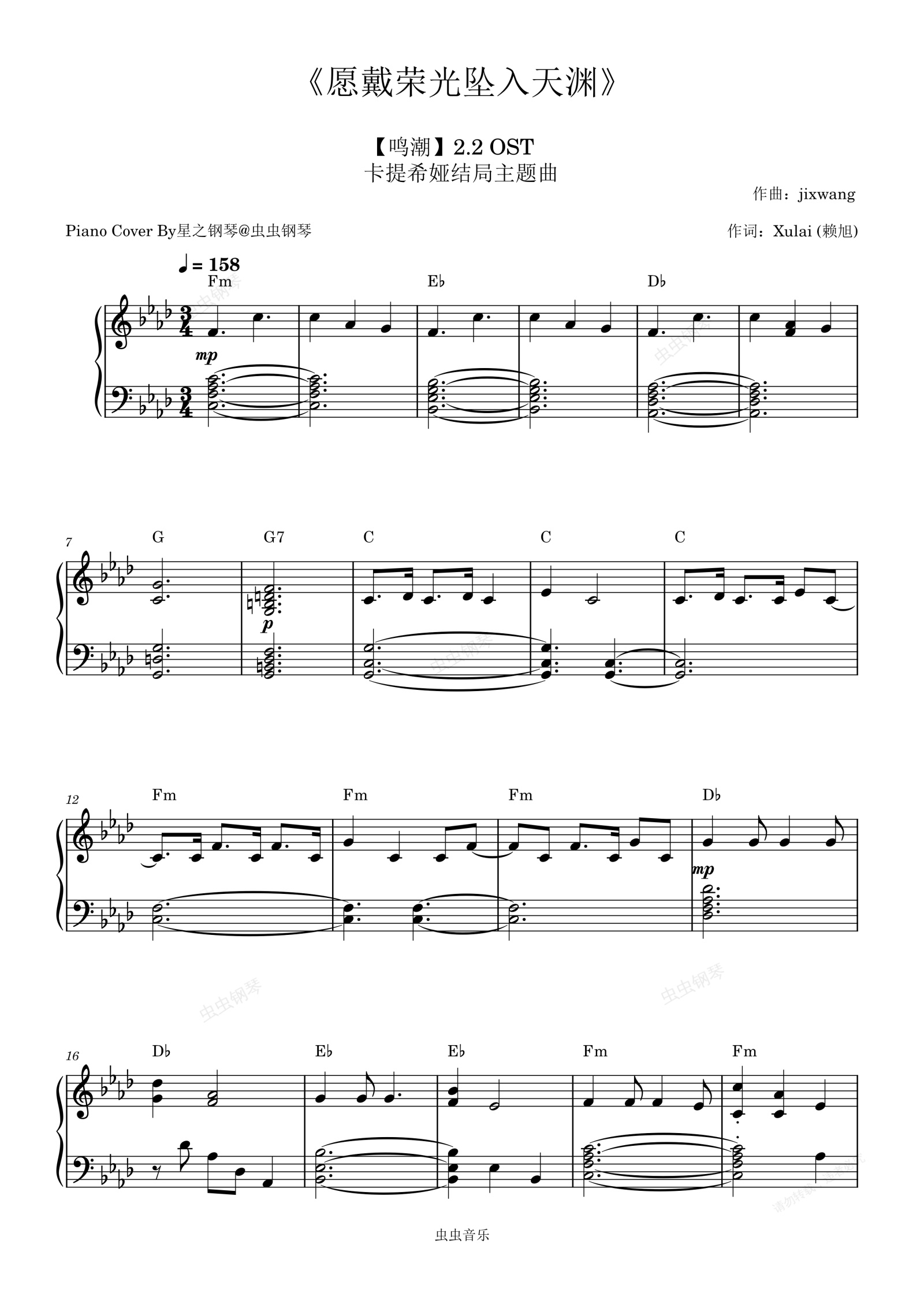 钢琴谱:【鸣潮】卡提希娅主题曲《愿戴荣光坠入天渊》钢琴独奏版~星之钢琴~