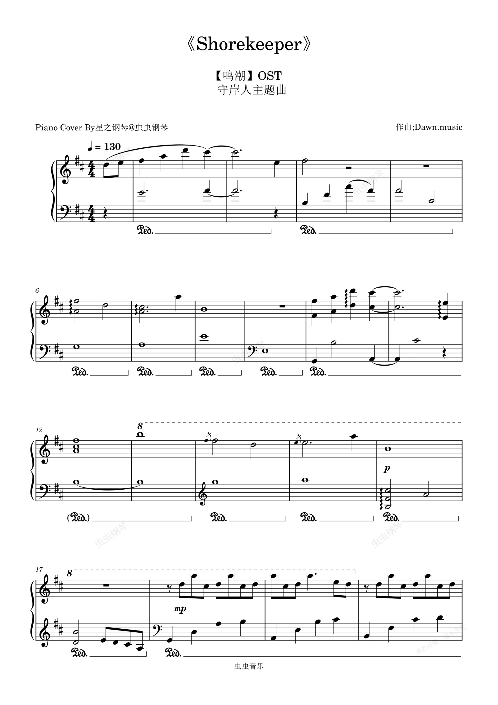 钢琴谱:【鸣潮】守岸人主题曲《Shorekeeper》钢琴独奏版~星之钢琴~
