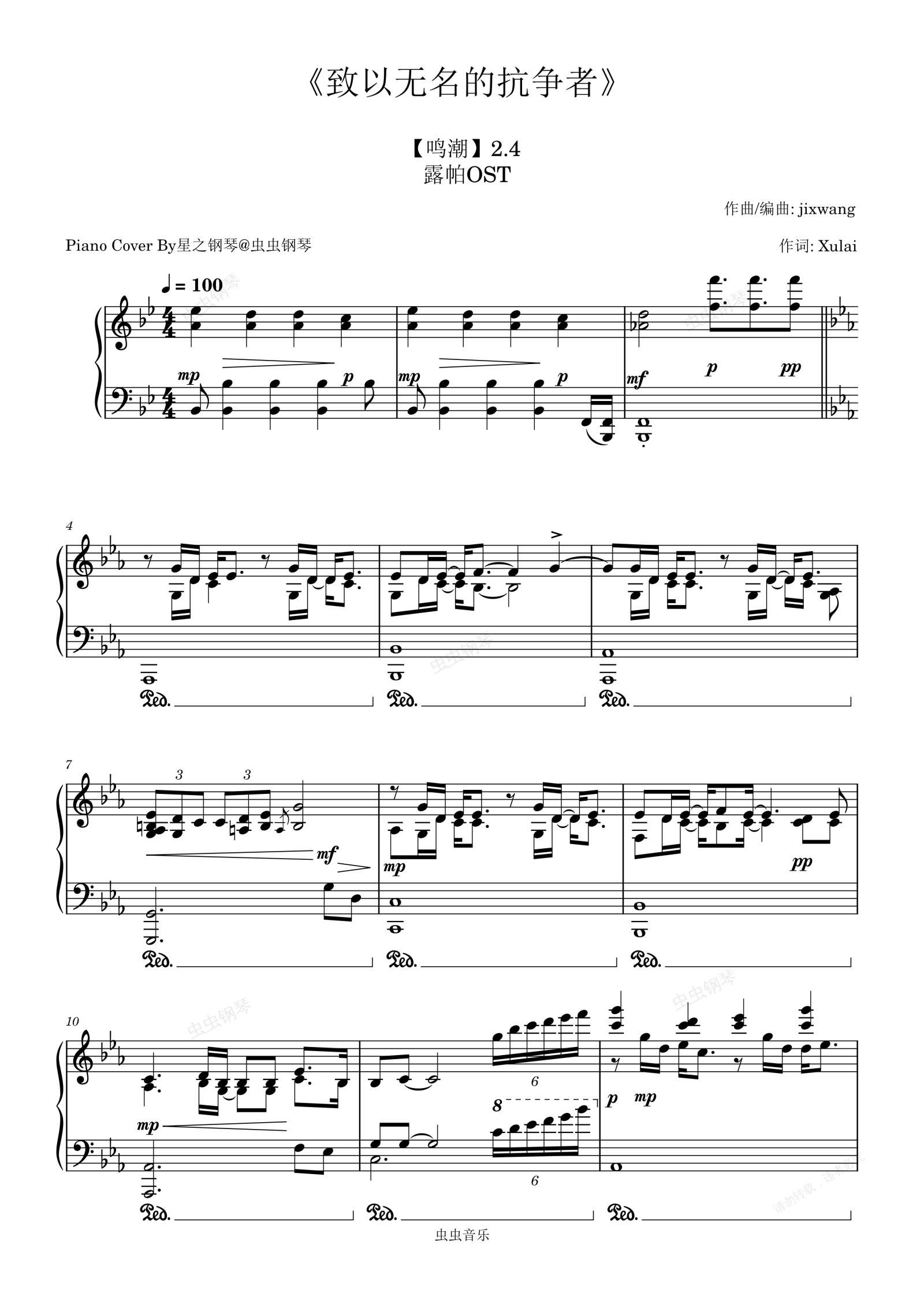 钢琴谱:【鸣潮】露帕结局《致以无名的抗争者》钢琴极限华丽版~星之钢琴~