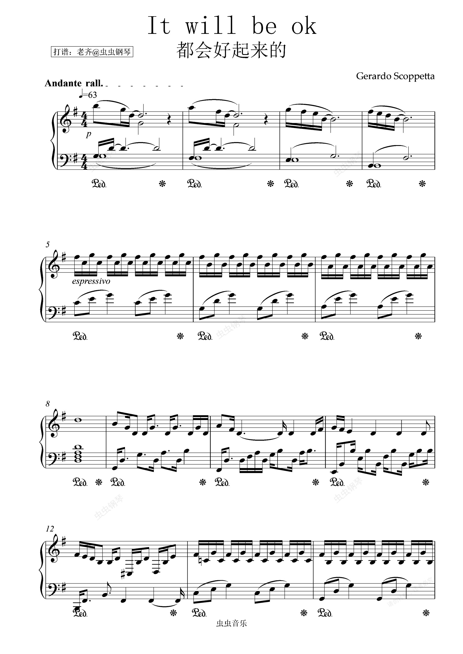 钢琴谱:It will be ok 都会好起来的