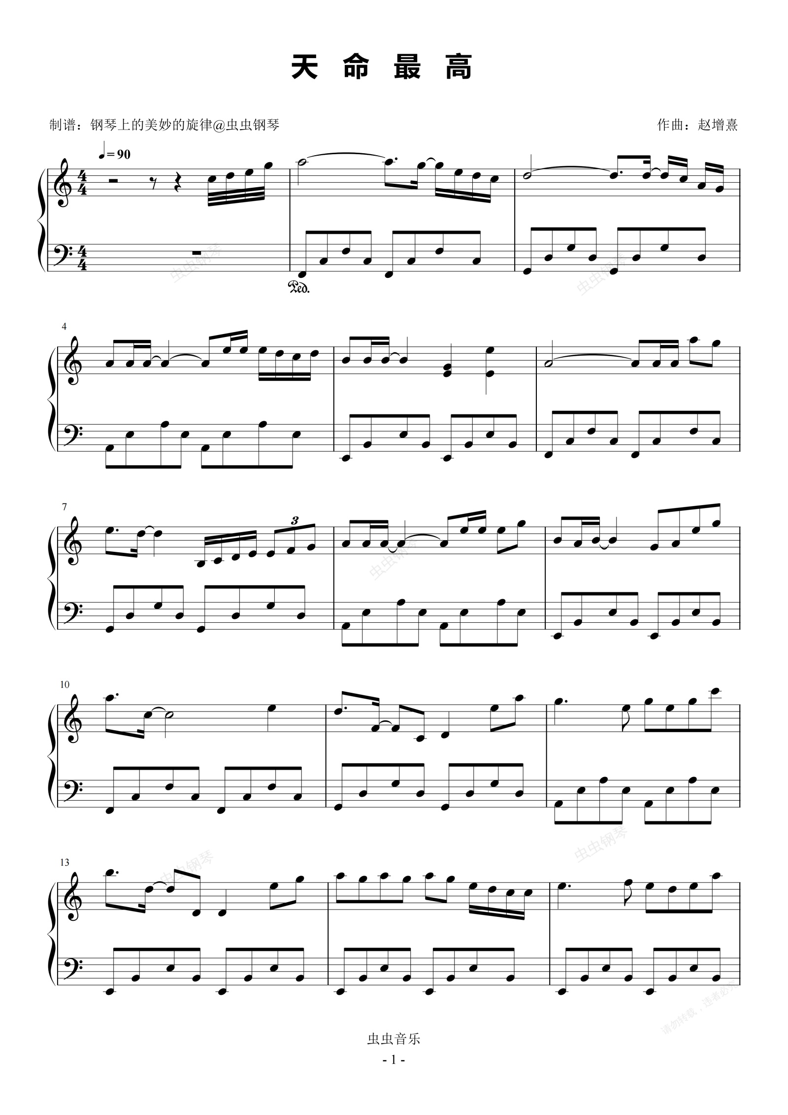 钢琴谱:天命最高 C调简易版 古天乐 寻秦记