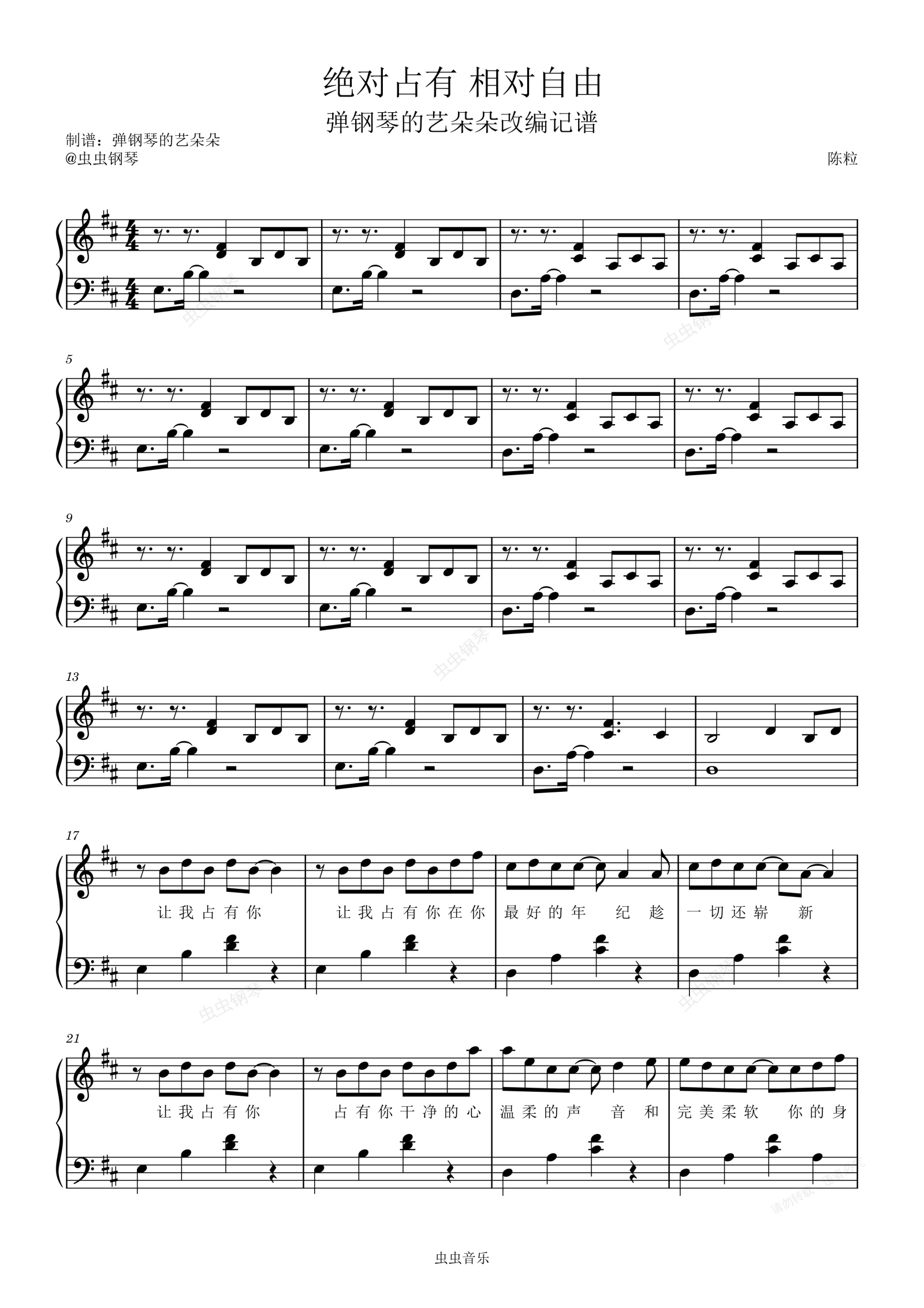 钢琴谱:绝对占有 相对自由(完整复刻版)