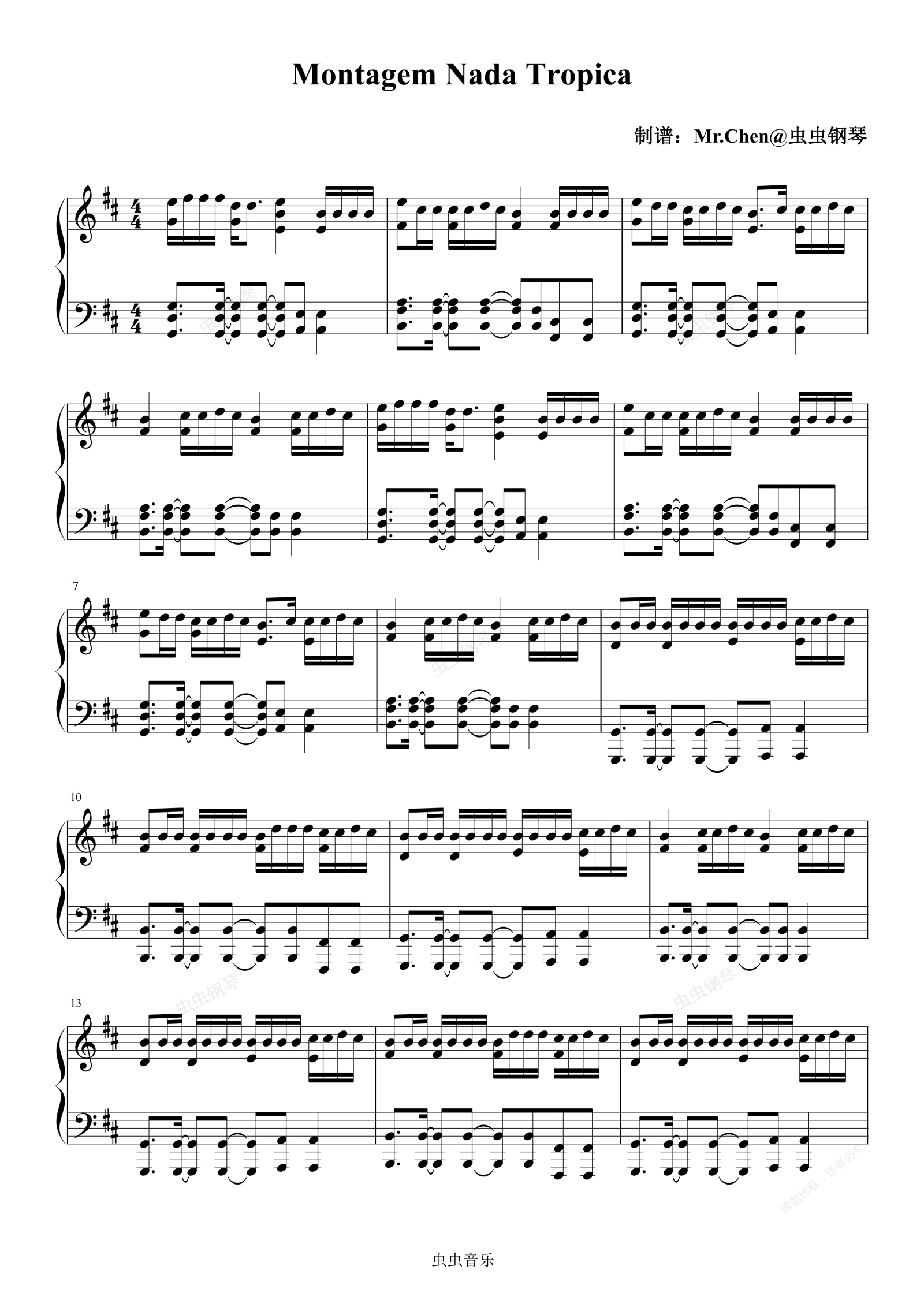 钢琴谱:Montagem Nada Tropica - 巴西Funk 极度还原