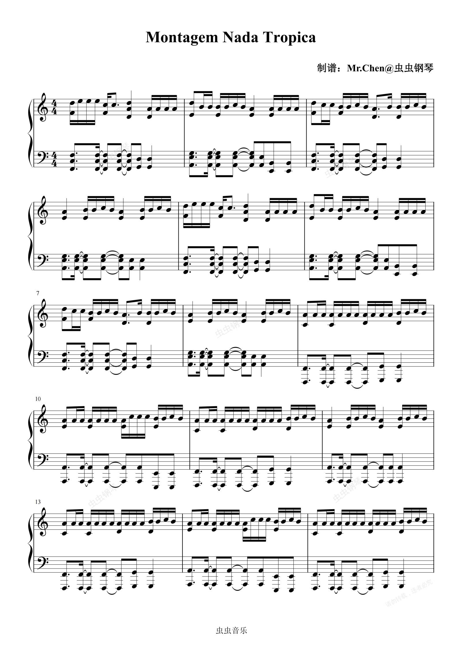 钢琴谱:Montagem Nada Tropica C调 - 巴西Funk