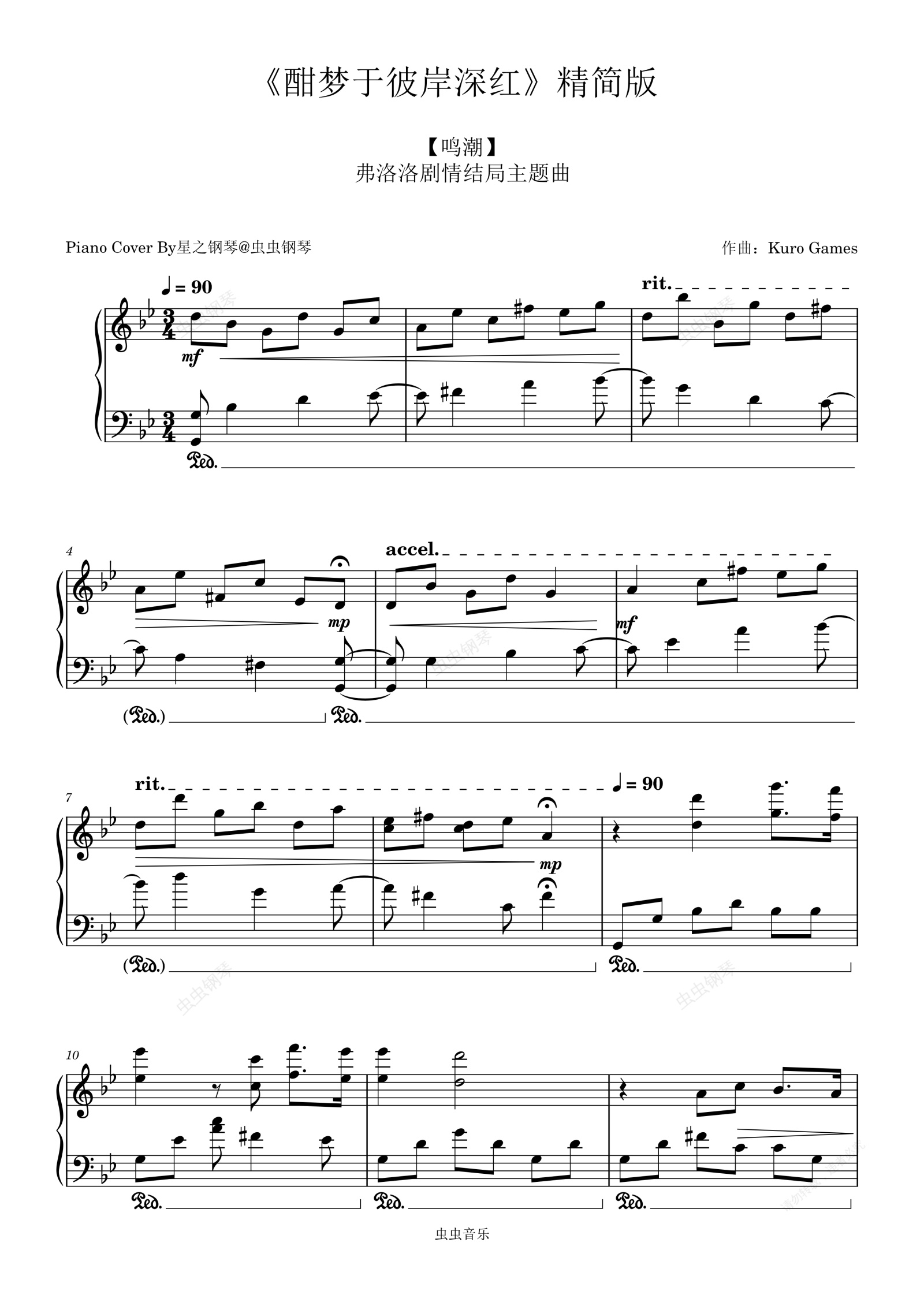 钢琴谱:【鸣潮】弗洛洛BGM《酣梦于彼岸深红》钢琴精简版~星之钢琴~