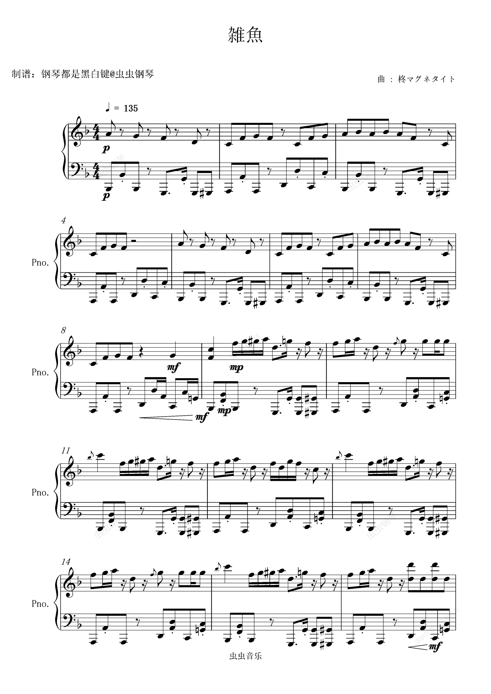 钢琴谱:[歌愛ユキ / 重音テト]雑魚