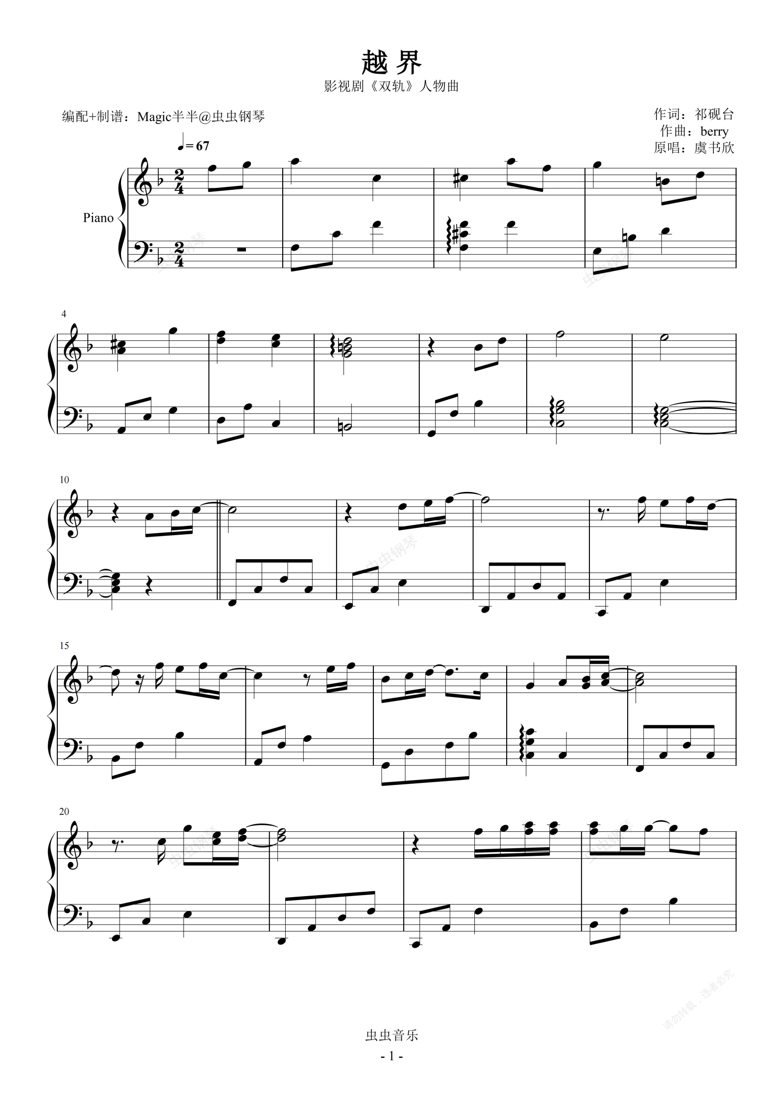 钢琴谱:越界(实用精华版) <双轨>影视剧人物曲