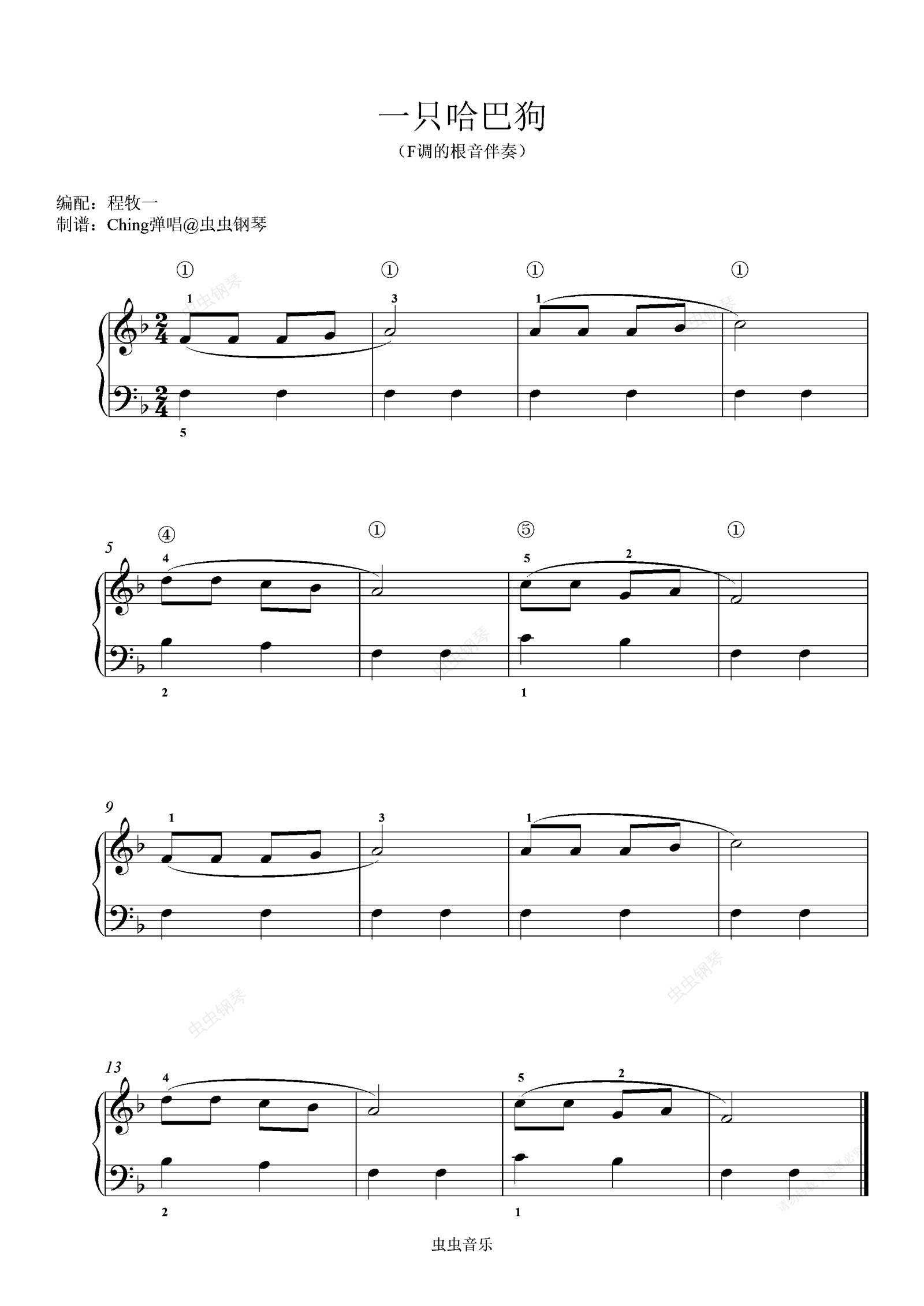 钢琴谱:【魔法钢琴】一只哈巴狗